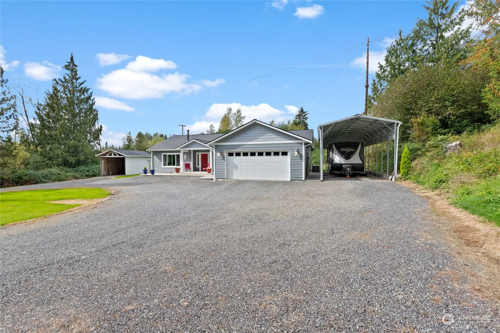 Follow the private driveway to this peaceful property w/a convenient circular drive. Built in 2019, this open-concept rambler on shy 2 acres offers vaulted ceilings, recessed lighting & wood stove for those chilly PNW nights. The kitchen boasts tons of counter & storage space & an island w/seating. Outside you’ll appreciate the covered patio w/hot tub, greenhouse w/raised beds & detached shop w/power for hobbies & toys. Primary suite includes a walk-in closet & en-suite bath featuring a large walk-in shower w/floor to ceiling tile. 2 additional bedrooms, full bath, office/den, laundry w/utility sink, 2-car garage, AC, RV parking w/all hook-ups, Connex storage w/lean-tos & more. Secluded, yet close to all amenities, hiking, biking & fishing!