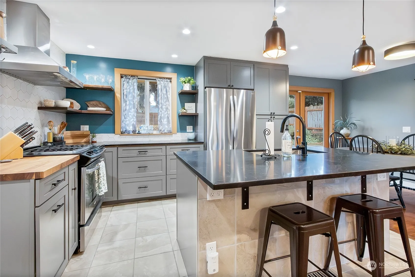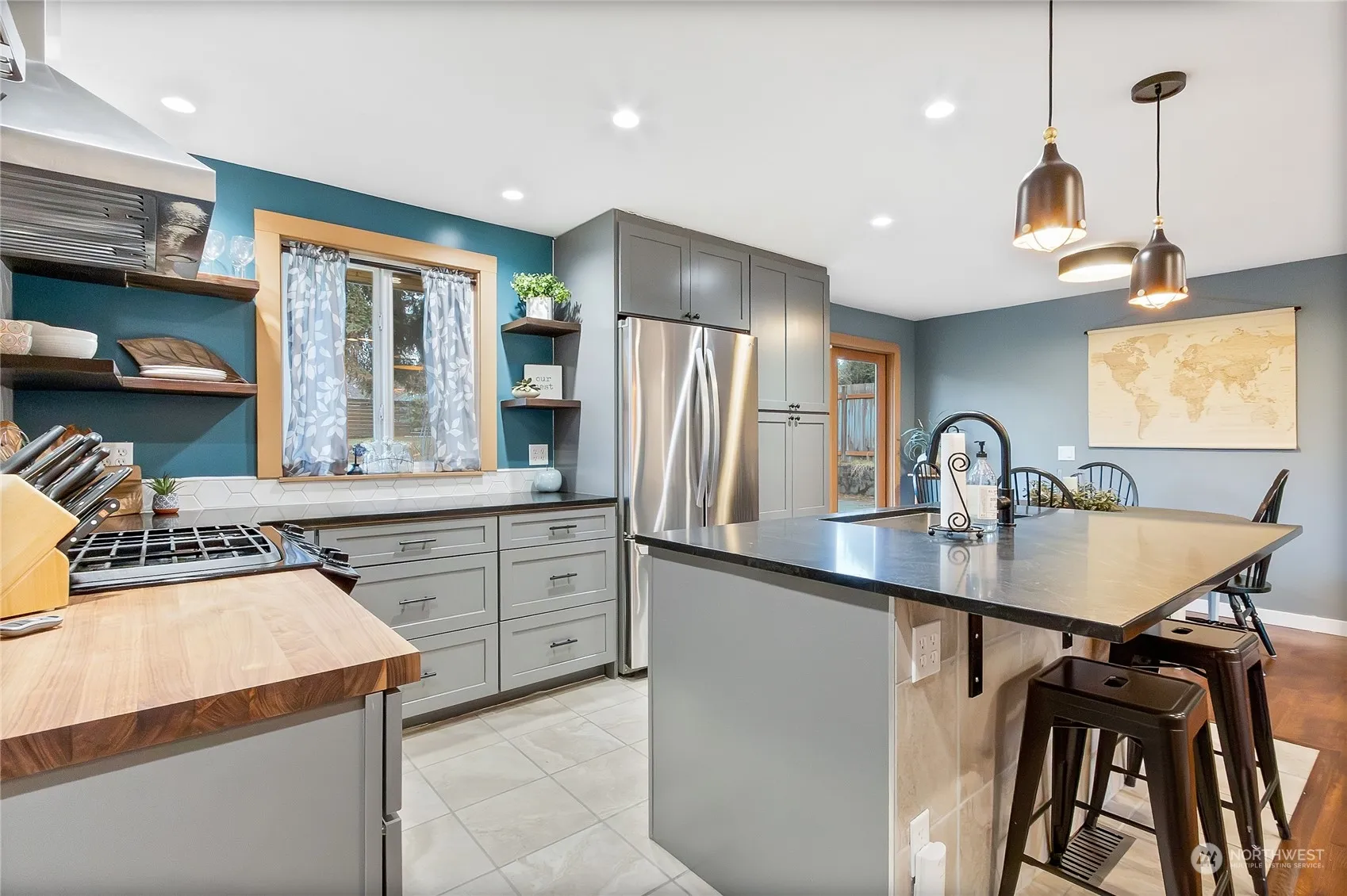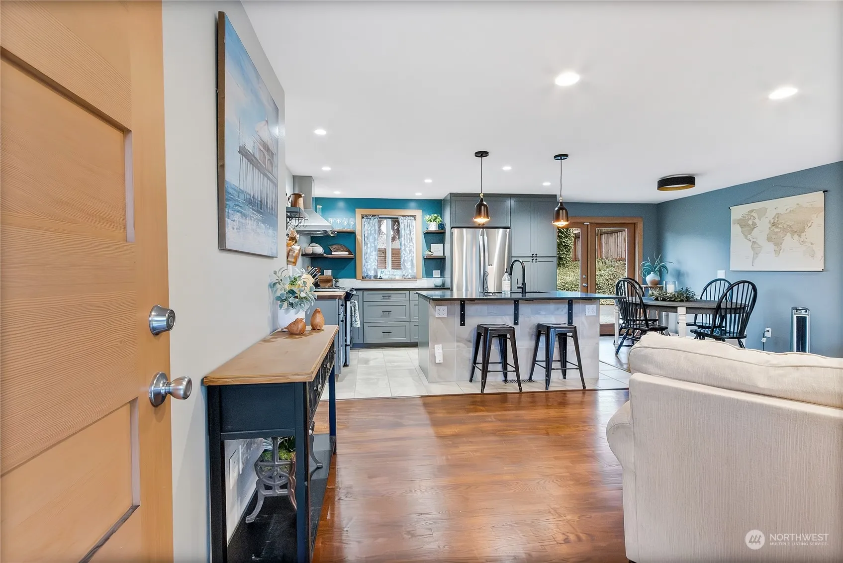 Welcome to this Remodeled Rambler in University Place. This home offers hardwood floors, open concept living, double pane windows & so much more! The Living Room has a gas fireplace insert & the dining area offers French Doors to the large fenced back yard. The kitchen is remodeled w/Honed Granite counter tops, gas stove, stainless appliances & plenty of cabinets including a pantry w/pull out drawers. Down the hall you will find 3 bedrooms & a remodeled 3/4 bath. The Primary suite offers a remodeled bath w/soaking tub & rain shower head above. Gas Furnace & Water Heater, 1 car garage w/new Washer & Dryer. Off street parking w/access to back yard through side gate. Close to UP schools & shopping. Come take a look!