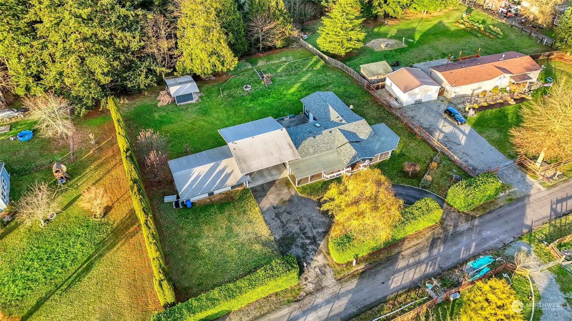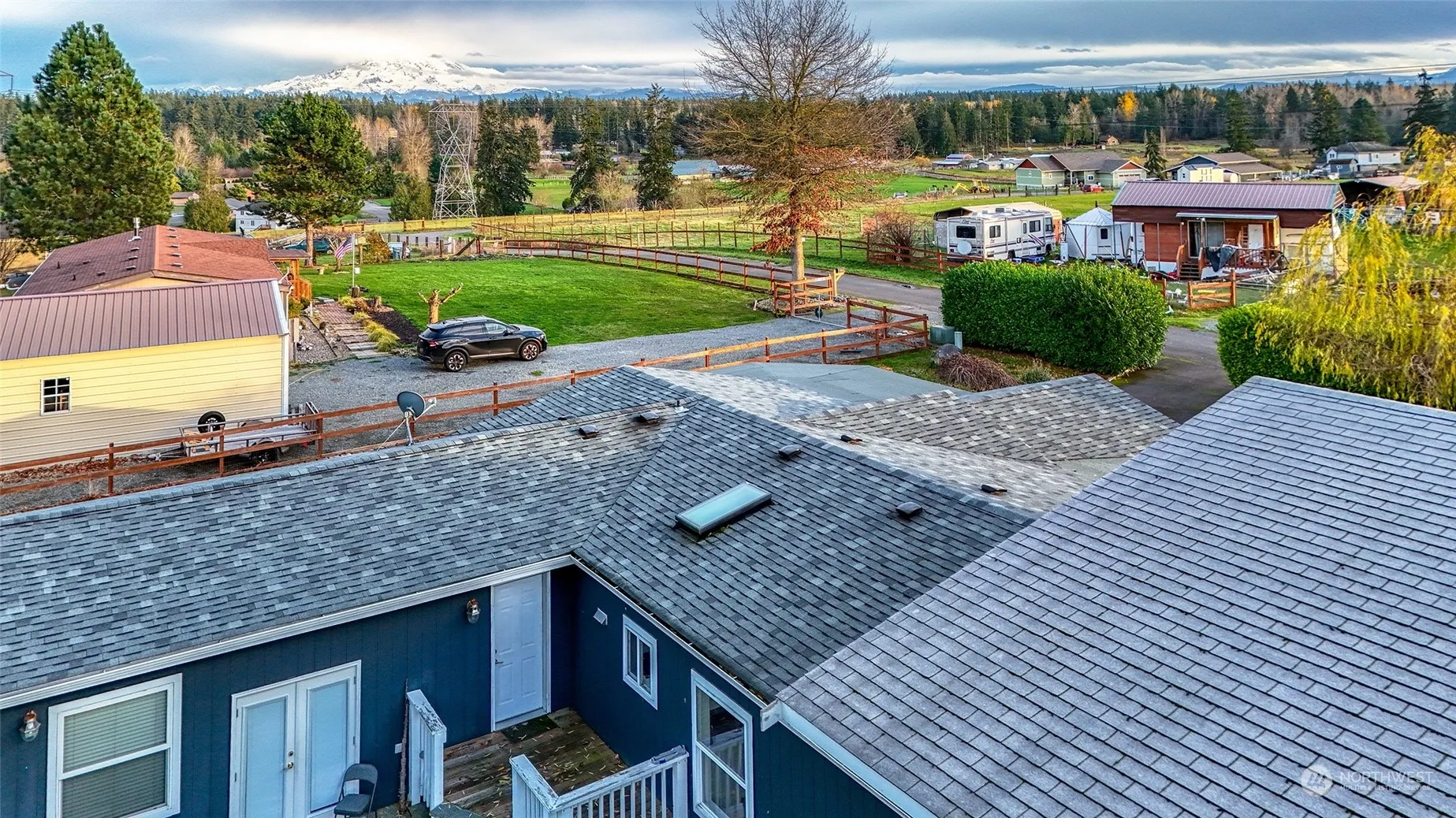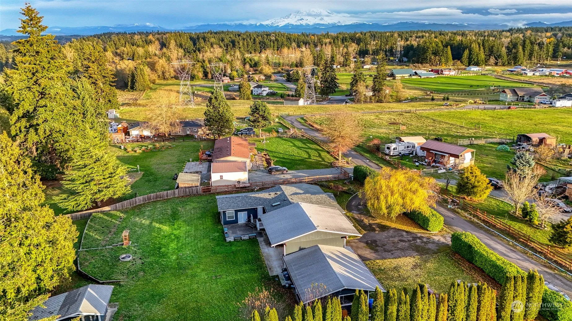 This beautiful well-maintained home sits on 1.25 acres of peaceful countryside. Imagine breakfast on your covered front porch with views of Mount Rainier & cozy moments at the backyard fire pit adjacent to greenbelt. This home’s ideal layout places entertaining spaces central & bedrooms at the wings. Open concept kitchen & living room with vaulted ceilings. Recently updated, the roof is only 8yrs old, newer appliances, newer carpet in the living room, primary bed & family room. Newer paint throughout. Paved circular driveway, covered RV parking & massive two-car garage plus shop. Conveniently close to JBLM for the active-duty military or civilian employees, plus no HOA means freedom to make it your own. Don’t miss this slice of paradise!