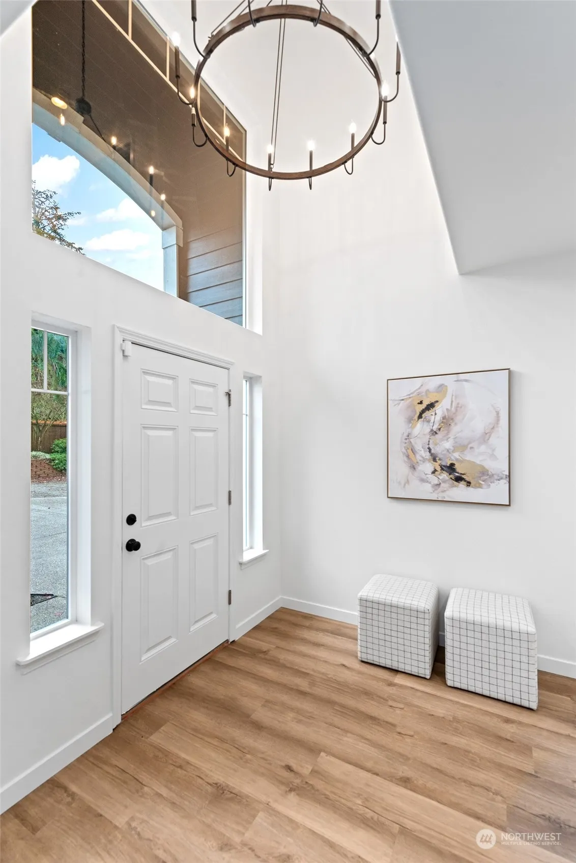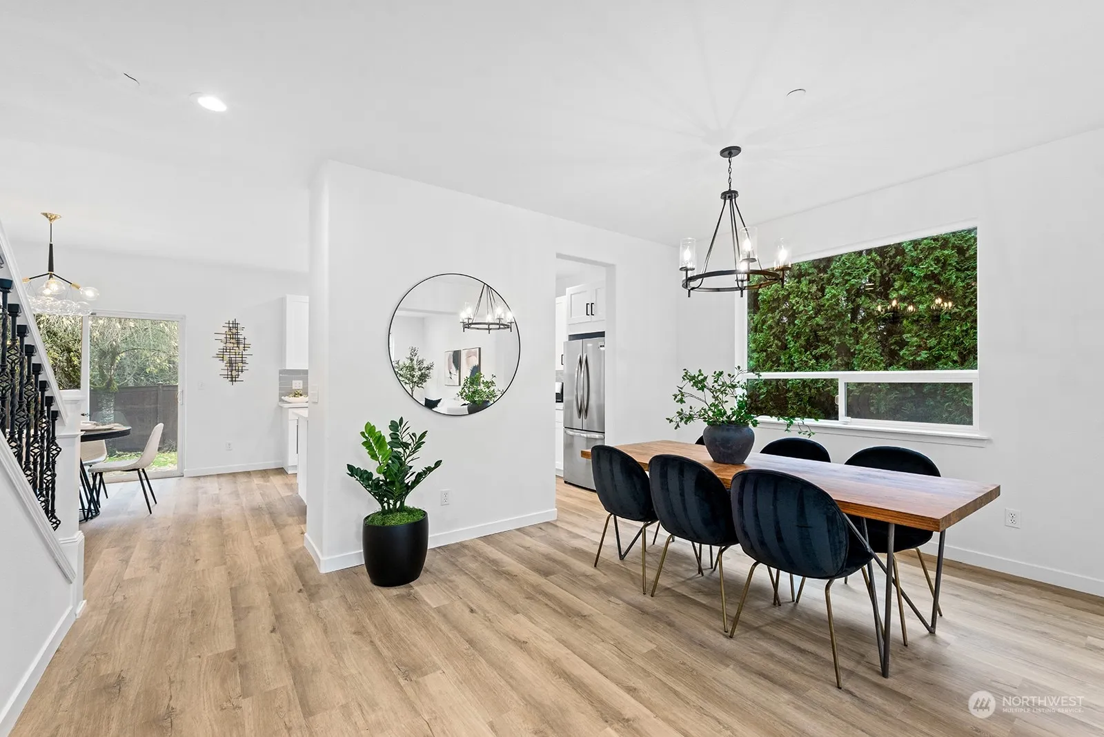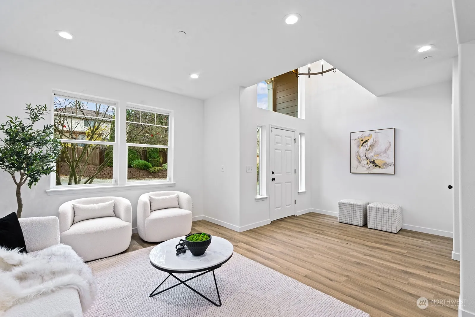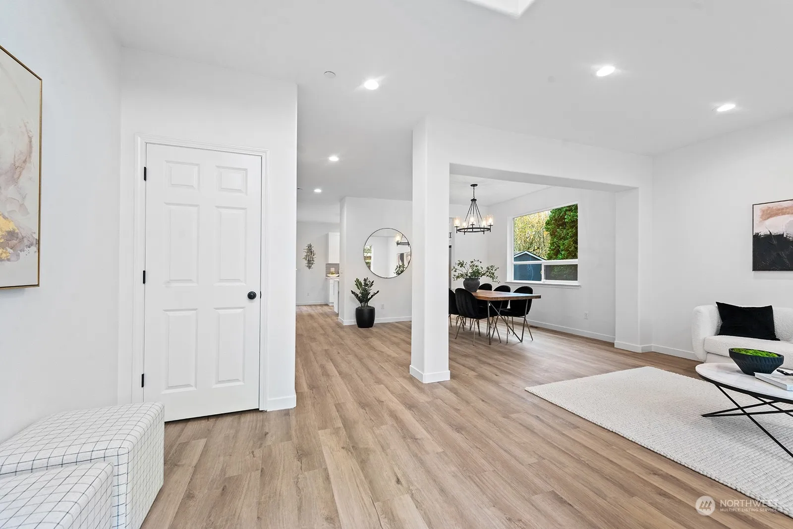 This gorgeously remodeled PRIVATE 4-bedroom home is a masterpiece of modern design and functionality! Every detail has been thoughtfully updated, starting with new LVP flooring that flows seamlessly throughout. The stunning kitchen boasts brand-new cabinets, sleek stainless steel appliances, and a convenient microwave drawer. All bathrooms have been fully updated, reflecting elegance and comfort. Recessed lighting enhances every room, while all-new fixtures and fresh interior and exterior paint create a bright, inviting atmosphere. Outdoor spaces are equally impressive, featuring new landscaping with yard lighting, perfect for evening relaxation. Fire suppression sprinklers add peace of mind, ensuring this home is as safe as it is stunning.