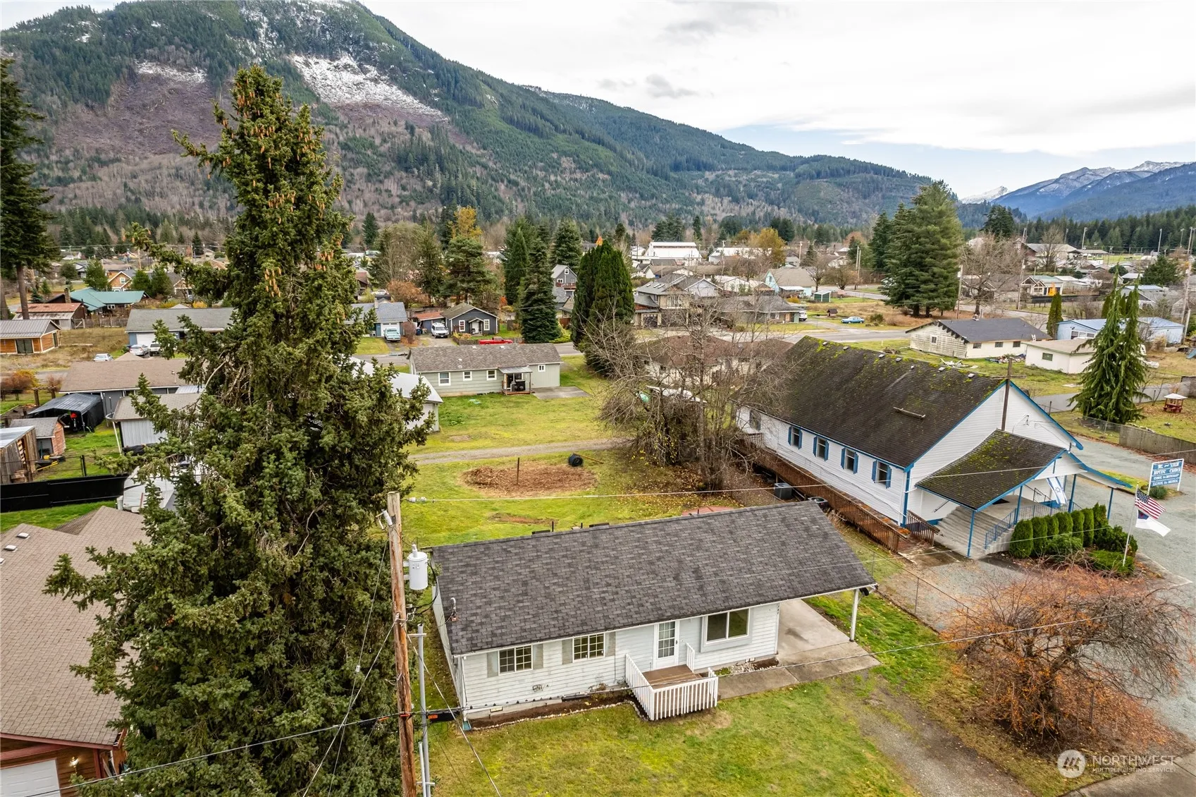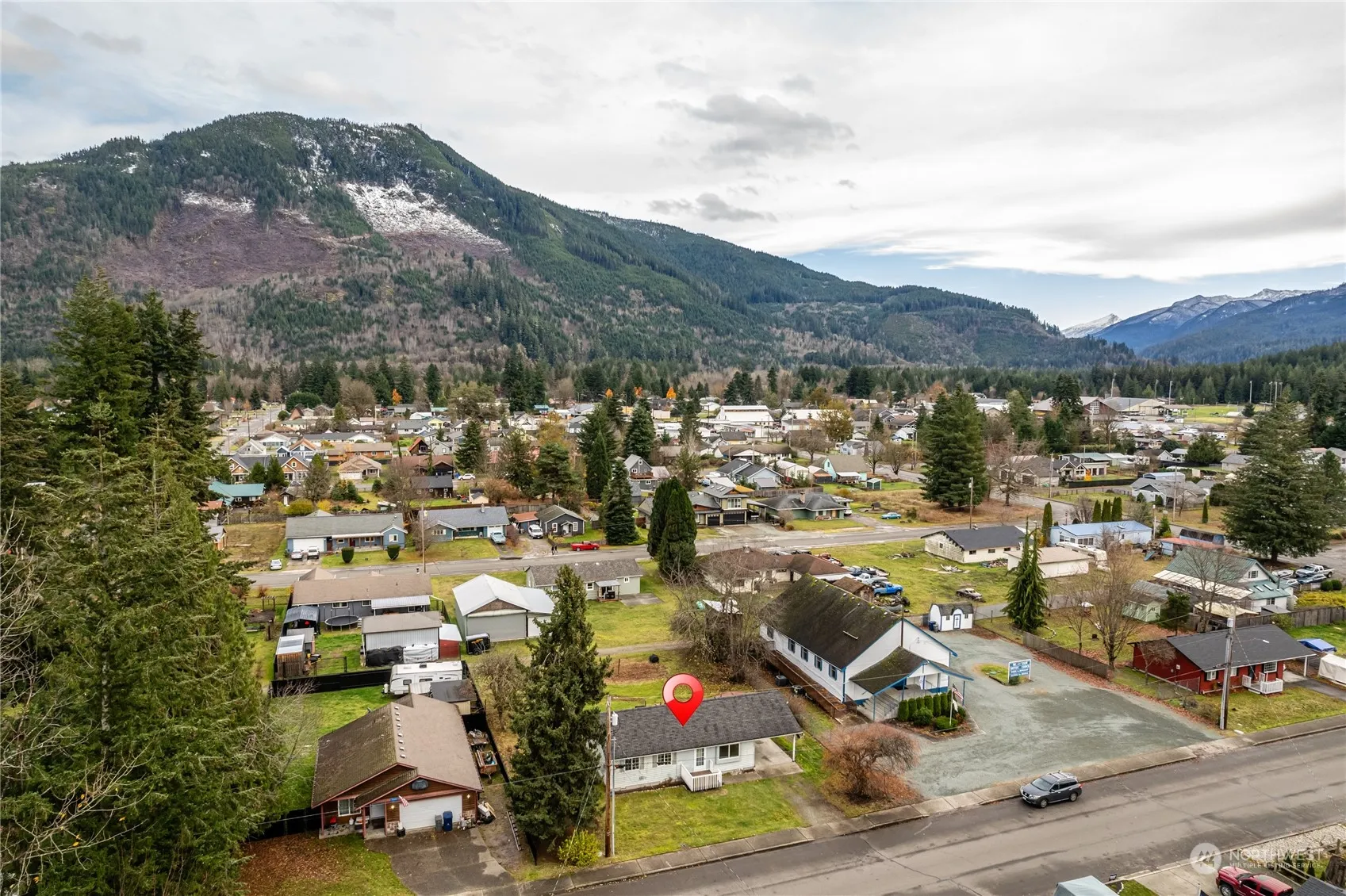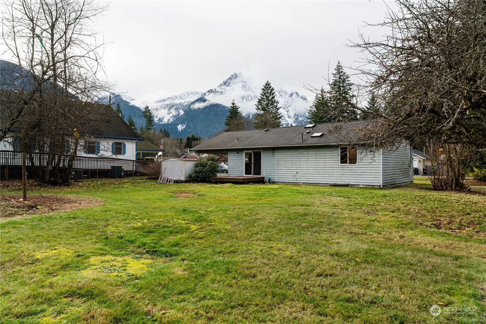 Surrounded by mountain views this 3 bed 2 bath rambler is the perfect starter home in the beautiful town of Darrington. Home has undergone a light refresh that will allow you to move in and make the final improvements to make it shine! Fresh interior paint, LVP flooring flows through-out, spacious primary bedroom with bathroom, and new trim and doors. Lots of natural light including skylights in the bathrooms. Deck off kitchen is perfect for BBQs. Home sits on a large lot with alley access. Oversized carport with storage shed. Come live and experience the small town vide at an affordable price in Darrington!