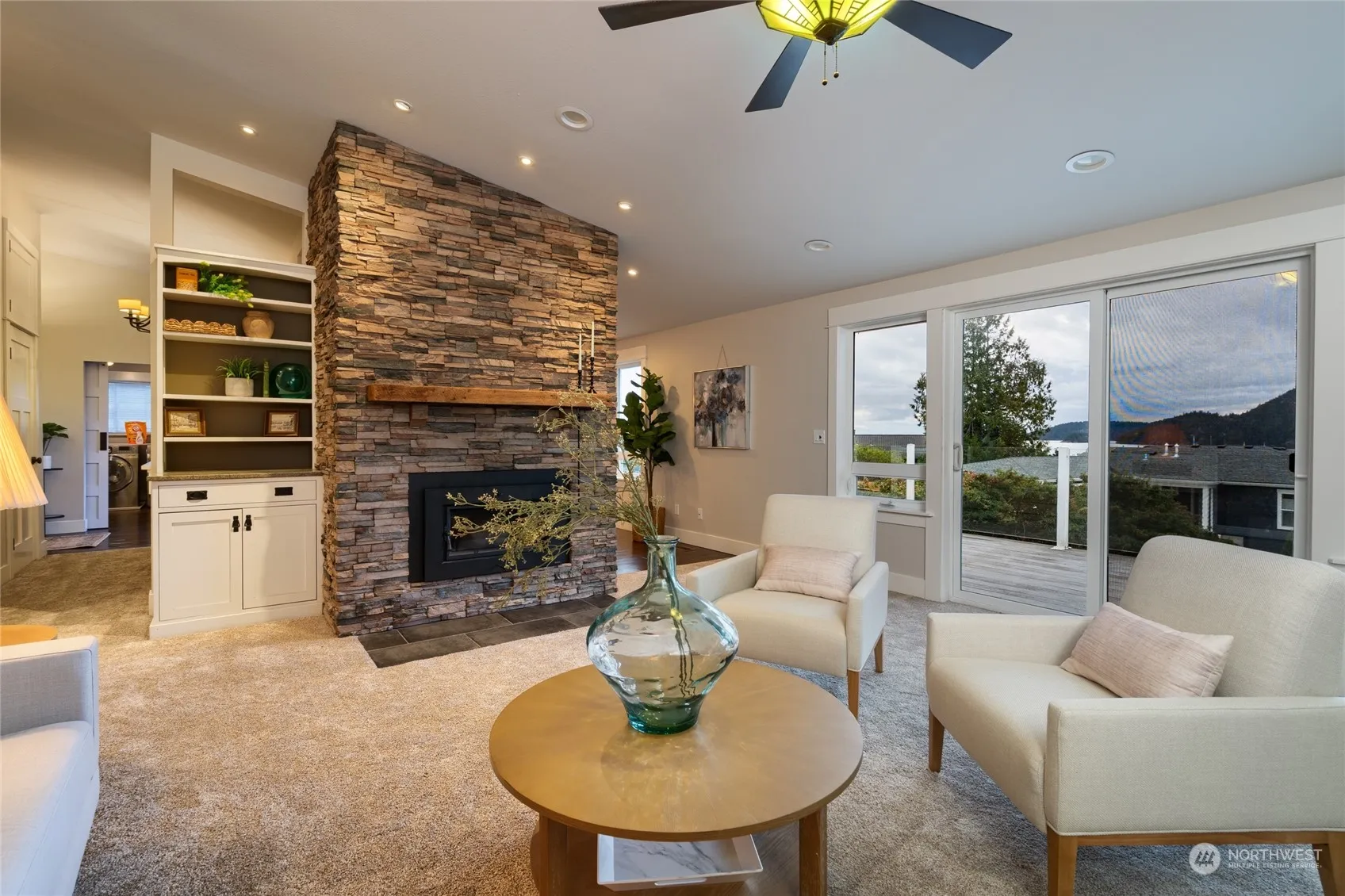 Enjoy breathtaking sunsets with extraordinary views of Burrows Bay, Burrows Island, Skyline Marina and the Olympics. The property itself boasts an extensively remodeled home with open living spaces for entertaining, a spacious main suite, view kitchen w/pantry wall, 3 BRs up including main & additional second main bedroom suite downstairs, with large TV/Movie/hobby room. Move right in with New carpet and paint upstairs and all bathrooms remodeled (w/heated tile floors). Located in the heart of Skyline, walking distance to all Skyline amenities including private beaches, pickleball, tennis, basketball and several parks. It’s the perfect setting for an active, outdoor lifestyle in an Award winning Small Waterfront town.