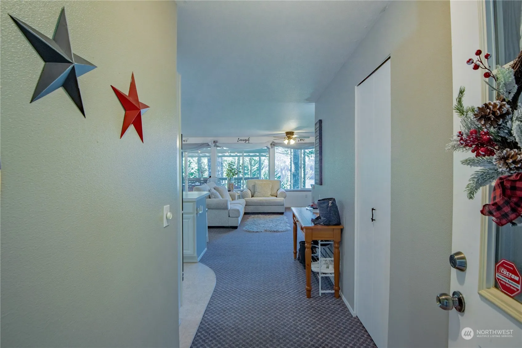 Enchanting Lakeside Haven at Lake Cushman! Nestled quietly at the end of a cul-de-sac, this delightful home offers breathtaking views from almost every vantage. Step inside to an open, light-filled layout with a newly updated kitchen that flows out to a spacious covered patio overlooking the lake. The main level features a cozy primary suite & additional bedroom while the lower level’s spacious bonus room, with its own deck access, is an ideal spot for entertaining or a peaceful evening under the stars. Far from the city’s glare, the nights here reveal a sky sparkling with clarity. Enjoy access to three lakes, parks, boat launches, a golf course, and more in a vibrant community perfect for outdoor enthusiasts. Your tranquil retreat awaits!