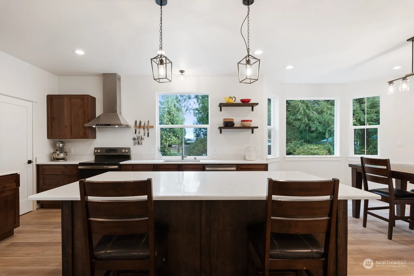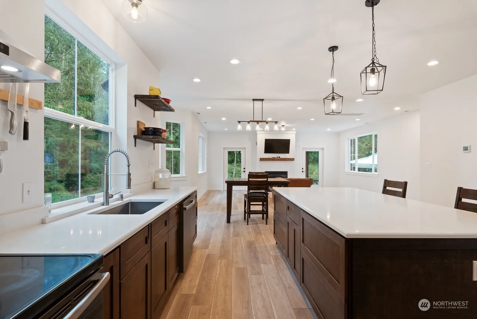 Charming single-family home that is newly remodeled with a massive addition designed by Pelletier & Schaar, nestled on acres of picturesque land & close to town & amenities. As you enter the house, you are greeted with abundant living space, chef’s kitchen, easy-to-care-for plank flooring, and double doors leading out to a covered entertainment area & gas fireplace. This home boasts an expansive primary suite, adjacent room that can be used for an office, with a luxurious 6-piece ensuite & two walk-in closets. The home is heated with a top-of-the-line heat pump. New windows, roof, sided with cedar from the property. Enjoy your mini farm with fruit trees, garden space & walking trails. 3-bed home w/4 bed septic enough room for ADU.