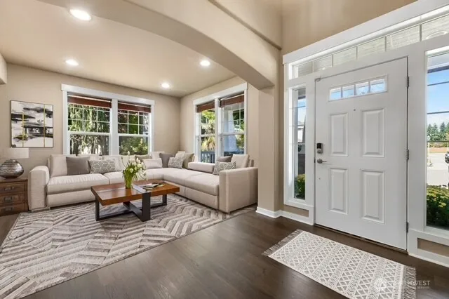 Fall in Love w/ this stunning PNW Craftsman, offering a 3-car finished garage, rich hardwoods throughout & fresh paint—fully turnkey & Move-in Ready. The main floor offers an open, airy layout w/ soaring entry, Den, Formal Dining, Butler’s Pantry & ¾ Bath. The Kitchen shines w/ SS appliances, LG island opening to the Great Room w/ cozy gas fireplace. Upstairs, spacious Primary Suite w/ dual vanity, Soaking Tub, Shower & WIC, +2 spacious Bedrooms, an expansive Bonus Room w/ high ceilings, ideal for movie nights or a home gym. Fenced backyard w/ shed. Recent updates: treated roof, hot water tank, appliances & toilets + a 1YR Home Warranty INCLUDED! Close to Hwy 410, Bonney Lake & Lake Tapps. Up to a 1% Preferred Lender Credit Available!