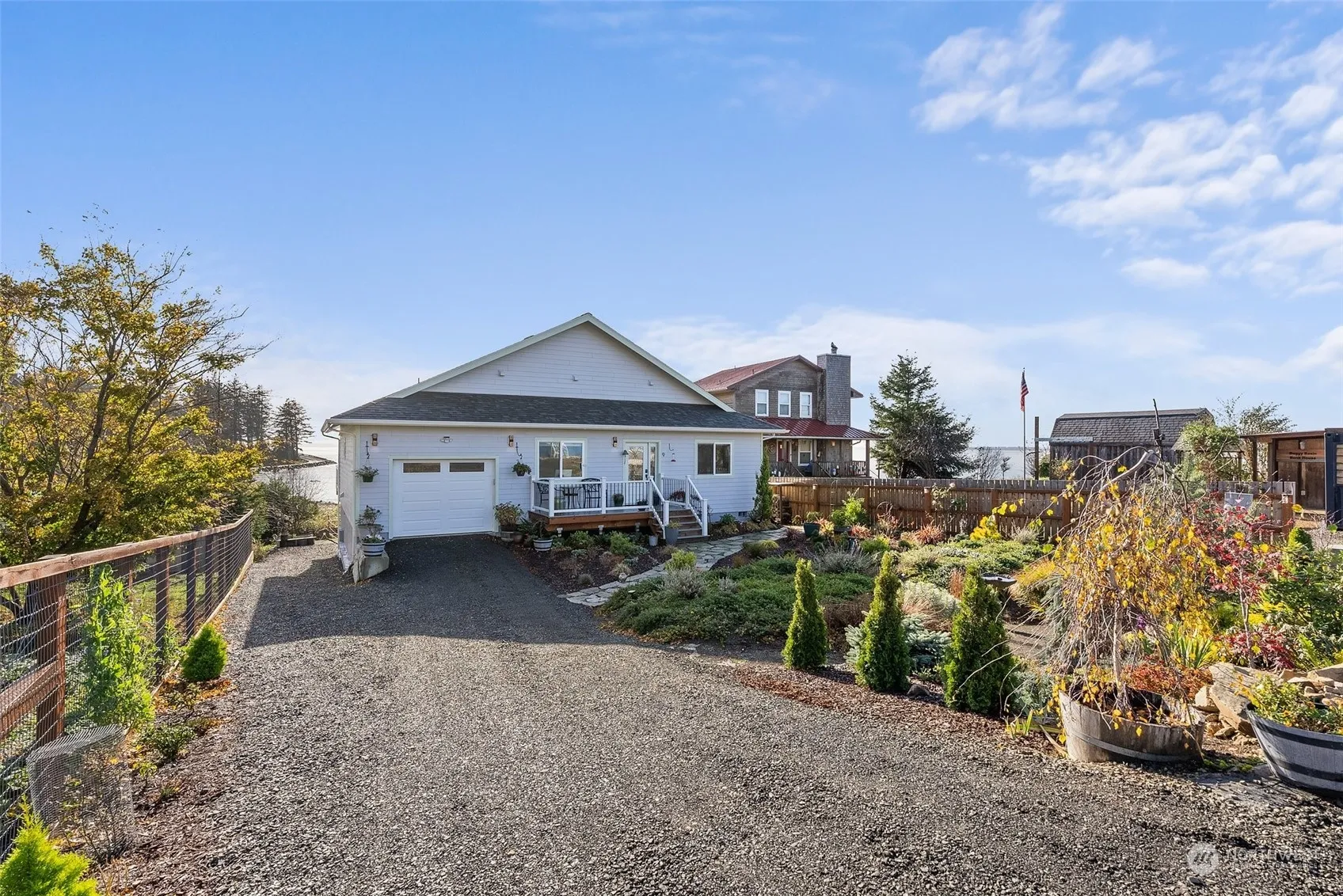 Situated in a picturesque setting with stunning water views, this home offers the perfect blend of charm & modern convenience.Inside, the bright interior is beautifully accented with warm wood finishes & anchored by a cozy wood stove.The large windows frame breathtaking views, creating a tranquil backdrop.Enjoy a breakfast bar, stainless steel appliances, & panoramic water views in the kitchen.The primary bedroom offers a private retreat with porch access & an ensuite bath that boasts an oversized shower.Additional highlights include a spacious laundry room, versatile workshop space, 50 year roof, & beach access. Whether you’re relaxing on the porch or enjoying the sandy shoreline, this home promises a lifestyle of comfort & natural beauty.
