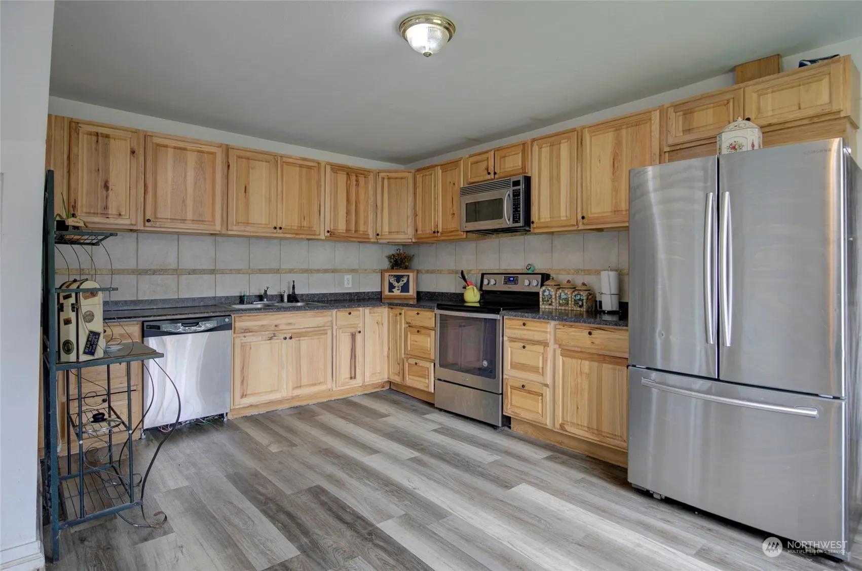 Come see this corner lot home with a fully fenced yard. Cute 2 bedroom, 2 bath home with one of the bedrooms and bath on the main level. Stay cozy in the winter with a great gas stove in the bright and airy living room. The upstairs features a bathroom, bedroom and a flexible multiuse space. Huge kitchen with enough storage to hold all the stuff you need to prepare like a chef! Single car garage with additional off street parking. Come see this comfortable home today.