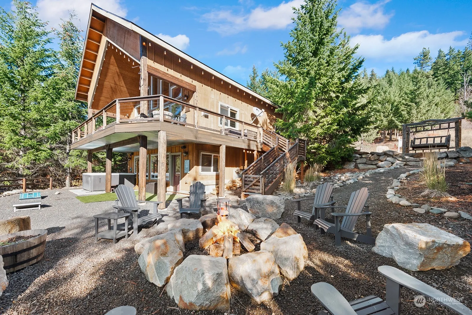 Welcome home to the Roslyn Ridge Life- A world away and right where you want to be! A cozy three bedroom plus bunkroom 2,118sf residence centered around the great room which is the heart of the home -boasting soaring ceilings with unparalleled panoramic mountain and territorial views. Features include a/c, two car garage, fire pit, hot tub and entertaining sized view deck. Four season adventures await with biking, snowshoeing, hiking, snowmobiling and moto from the front door. Easy access to community Activity Center with workout room & seasonal outdoor swimming, tennis & basketball courts. Where do you want to live tomorrow?