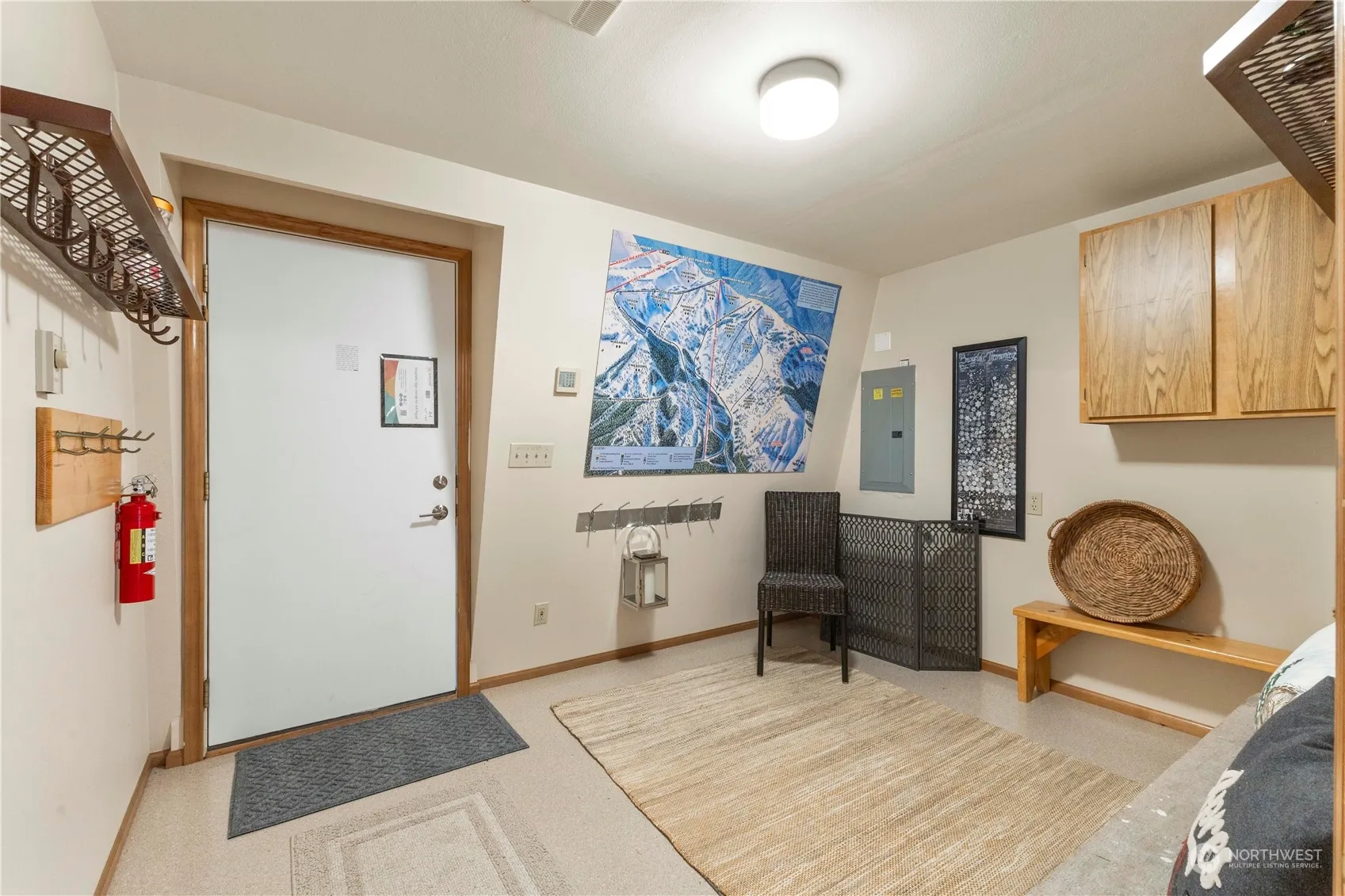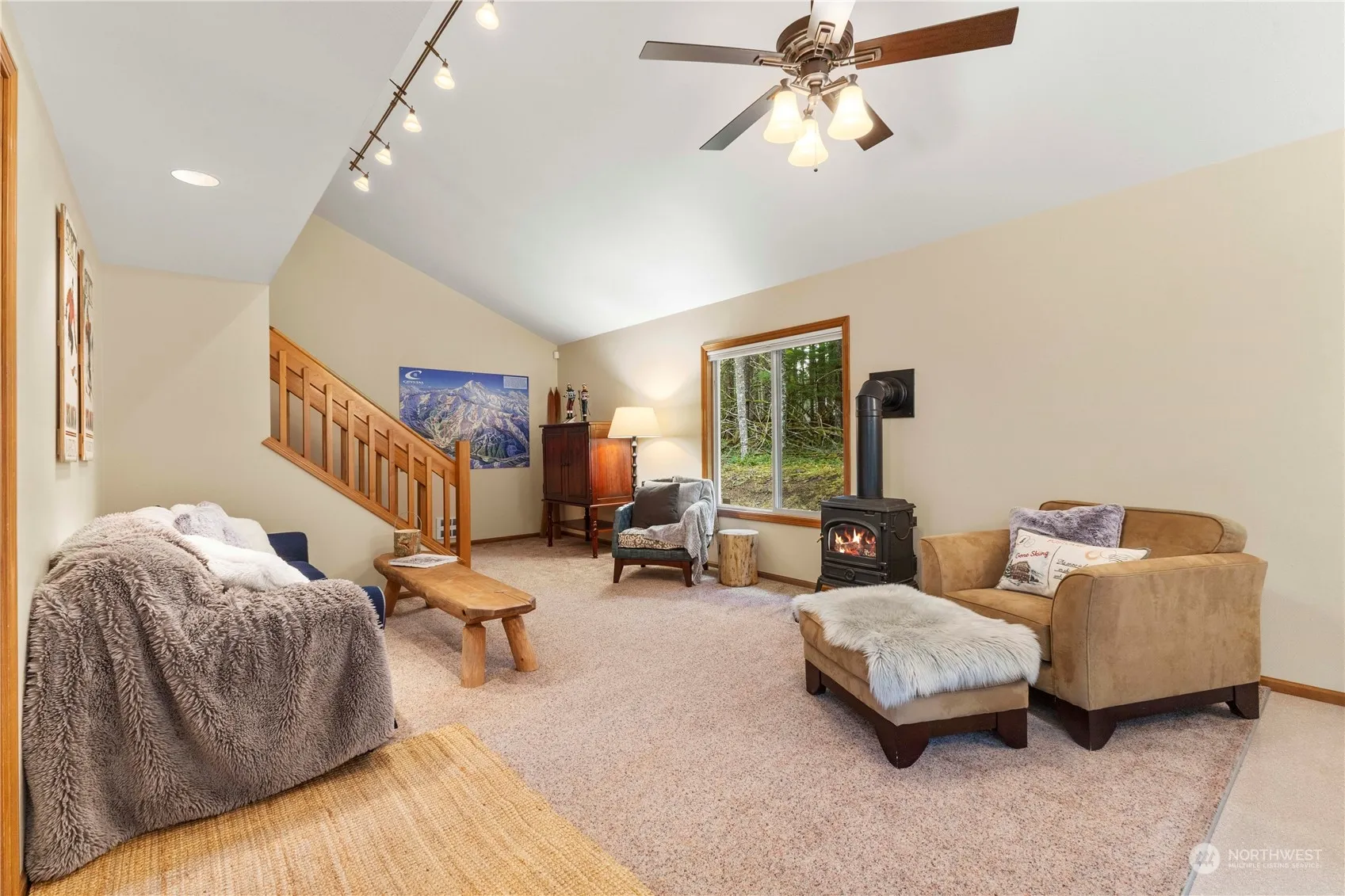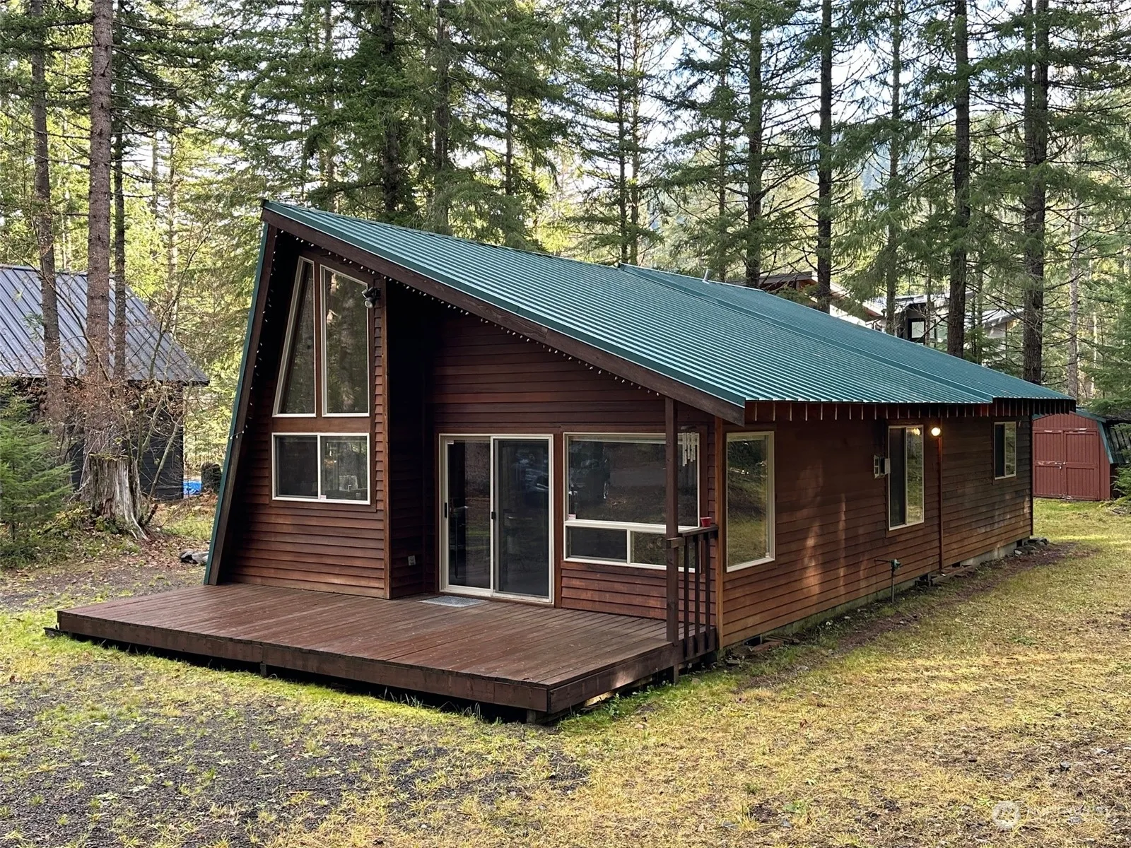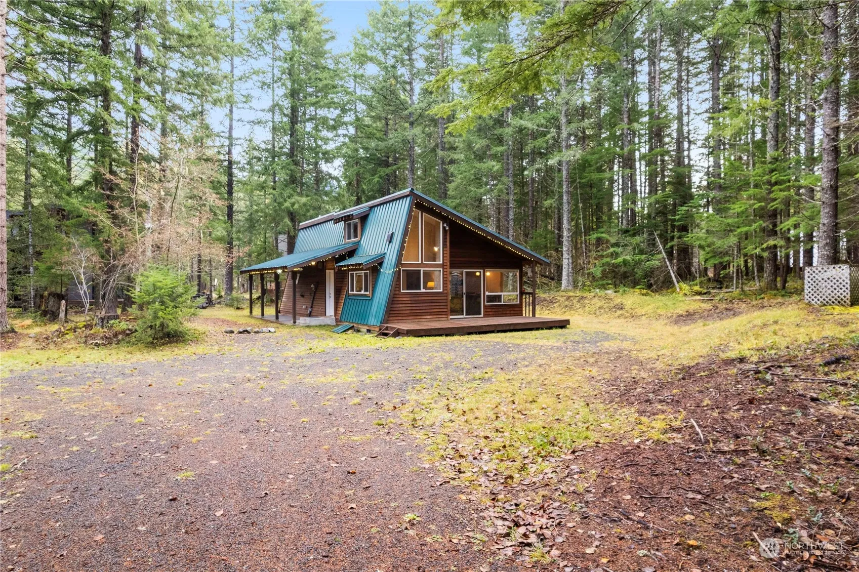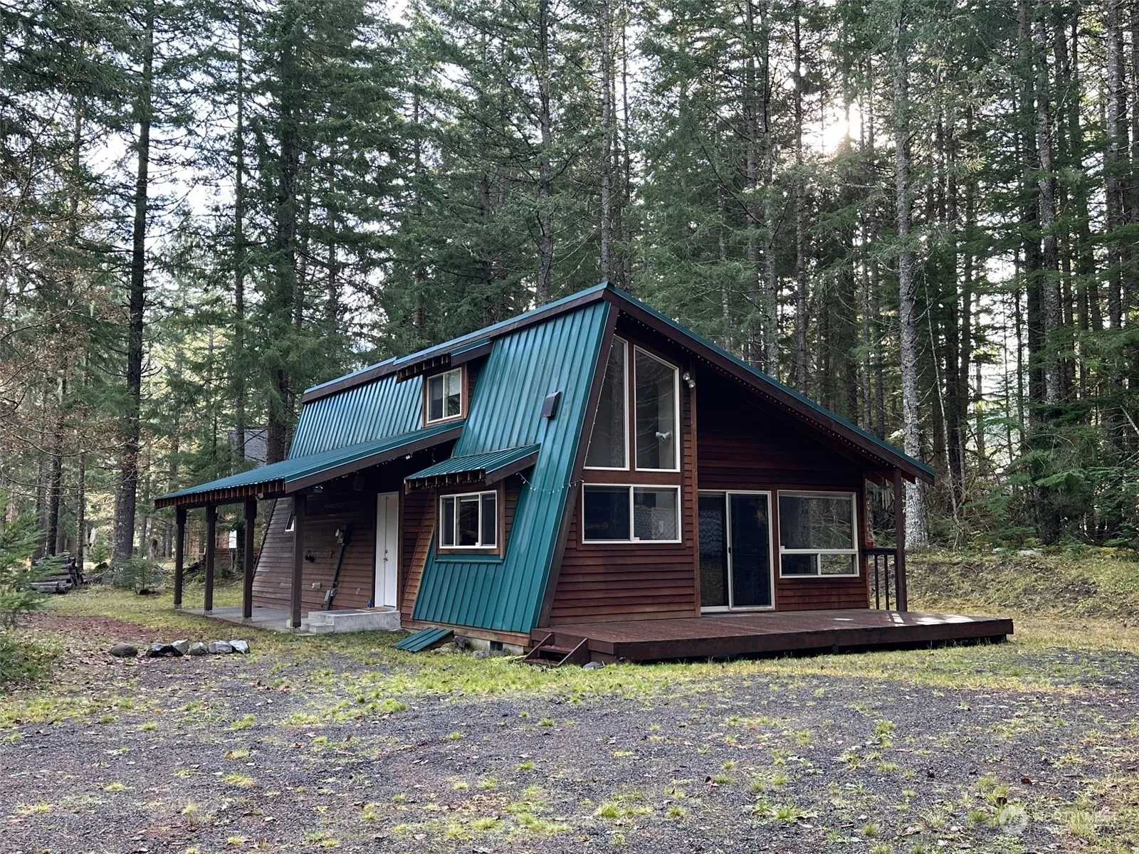 Welcome to this mountain hide-away, ready just in time for the 2024-25 Crystal Mtn winter season. 1,624 sf cabin located on a 0.74 acre lot in the Crystal River Ranch neighborhood. Lrg entry w/ plenty of space to store gear. Enjoy the cozy warmth of the propane stove, along w/ the open floor plan, vaulted ceilings, and the inviting living, kitchen & dining areas. Primary bedroom and a full bath w/utility closet are conveniently located on the main floor, while two additional upper level rooms comfortably sleep 4. Sizable property is tucked into a wooded cul-de-sac & has room to accommodate the addition of a garage. Quick & easy walk to community clubhouse, playground, ball fields, trails & White River. Listing contains excluded prospect