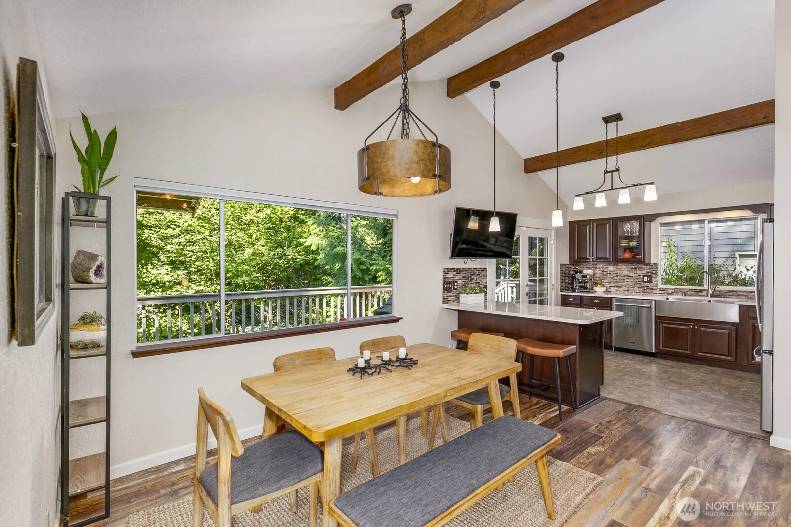Welcome to this wonderful home in highly desirable Picnic Point. Nature lovers rejoice in this home set amongst the trees, backing to a green belt. Huge floor to ceiling windows & warm interior tones blend with the setting. Multiple French doors open to a full length back deck, outdoor entertainers come hither for the outdoor living space & hardscape complete with bar, TV & firepit. Meanwhile inside, this home features updated kitchen open to living room w/vaulted ceilings and plenty of windows. Downstairs has an awesome rec room & 4th bedroom/office. Neighborhood is highly walkable w/nature trails & arguably the best school in the district. No HOA. 5 mins to beautiful Picnic Point beach. EZ access to shopping centers and commuter lanes.