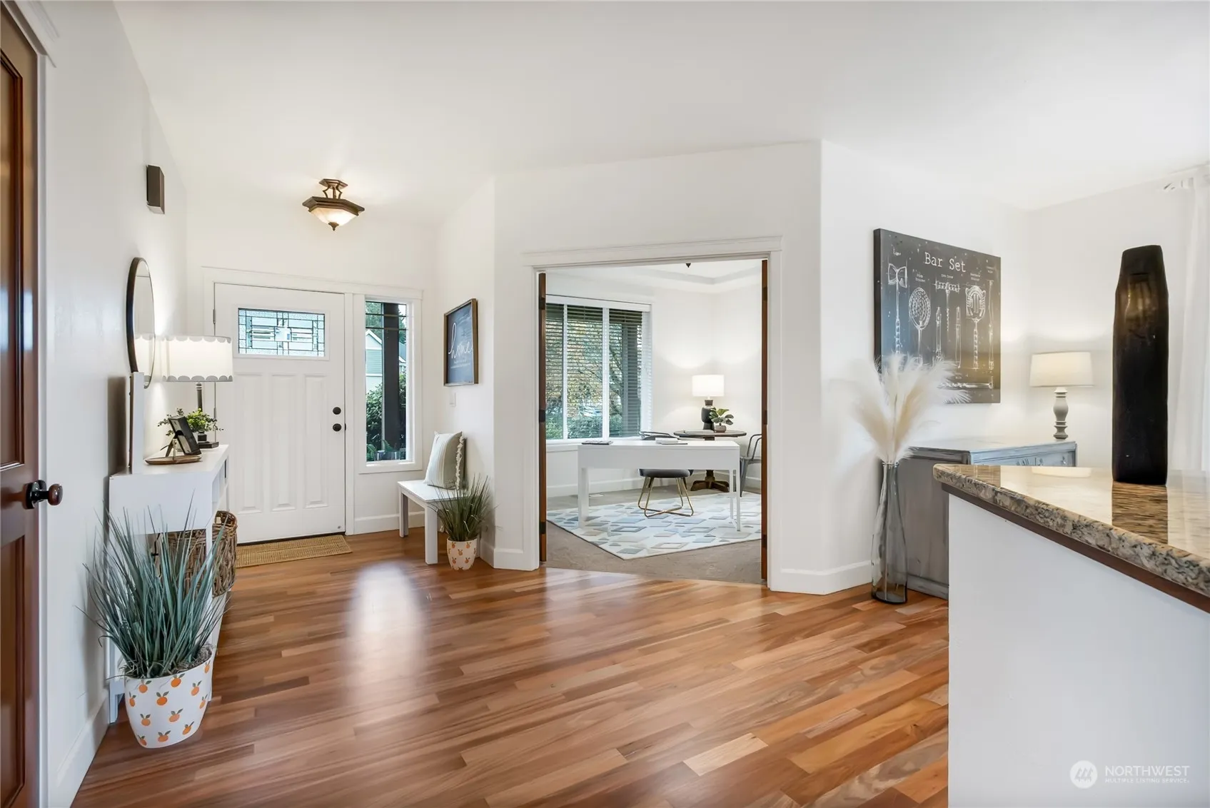 Welcome to this beautiful resale in the desirable Quiet Water community within the award-winning Dieringer School District. This home features 4 bedrooms, 2.5 baths, and a 3-car garage. The spacious primary suite offers a 5-piece bath and a walk-in closet, with a cozy fireplace and sitting area that can serve as a nursery or flex space.The lovely kitchen includes a walk-in pantry, hardwood floors, and granite countertops. The main floor has a formal dining room, a living room with a fireplace, a laundry room, and an office.Enjoy the community playground, sidewalks, and fun events like graduation parades and egg hunts. Conveniently located near Lake Tapps and a variety of amenities, this home is a must-see!
