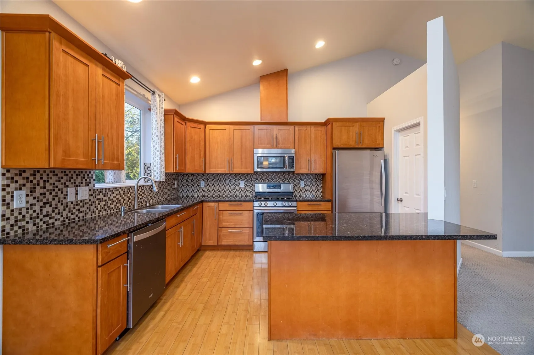 Welcome to this expansive 5 bed 3.5 bathroom home comfortably situated on a quiet cul-de-sac. Fully fenced backyard w/ covered patio backs up to green belt to provide peaceful & private setting. Enjoy the spacious living room with gas fireplace & vaulted ceilings. Bright & open kitchen is perfect for entertaining. Main level primary bedroom with soaker tub & generous size walk-in closet. Have multiple generations with you and need more space or want to help provide an income to your mortgage? Lower level with separate entrance, additional washer & dryer, space for a kitchenette and additional beds/ baths. Central vac throughout for easy cleaning. 2-car garage. Dog run in side yard. Ask about buyer bonus to get lower interest rate!