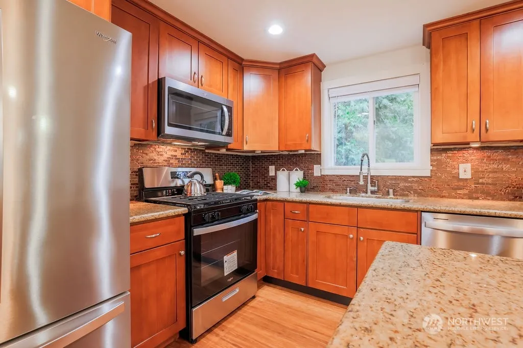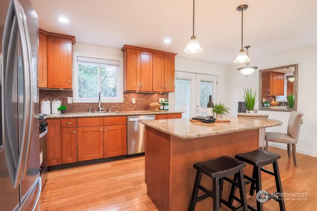 Don’t miss this beautifully updated 3-bedroom, 2-bath home in the desirable Cedar Village community! Featuring a new roof (2021) and gutters (2022), this home boasts a light-filled, open-concept great room with bamboo floors. The chef’s kitchen includes granite countertops, a spacious island, shaker cabinetry, and newer stainless-steel appliances. French doors lead to a large deck with a gas BBQ hookup, perfect for entertaining and enjoying scenic views. The lower level offers a versatile family room and sliding doors to a private, fully landscaped 1/3-acre lot with an outbuilding. Enjoy access to community beaches, parks, skiing, and hiking!