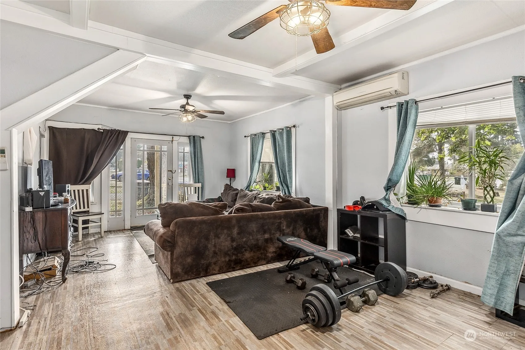 Charming 3 bedroom farmhouse on a large corner lot! Lots of potential on this property located within walking distance to downtown Roy & the rodeo. There is a detached shop with a submarine door, a 1 car garage for storage, a carport, and a cabana area with a wood stove! Fully fenced with a spacious backyard area and plenty of parking. Cute covered front porch and cement board siding on the exterior of the house. Ductless heat pump with AC. There is 1 bedroom & bathroom on the main level with 2 more bedrooms upstairs. The kitchen has lots of cabinet space with an eating area. There is a door laundry room off of the kitchen additionally. Bring your ideas and make this your new home! Within reasonable distance to JBLM & 60 mins to Seattle!