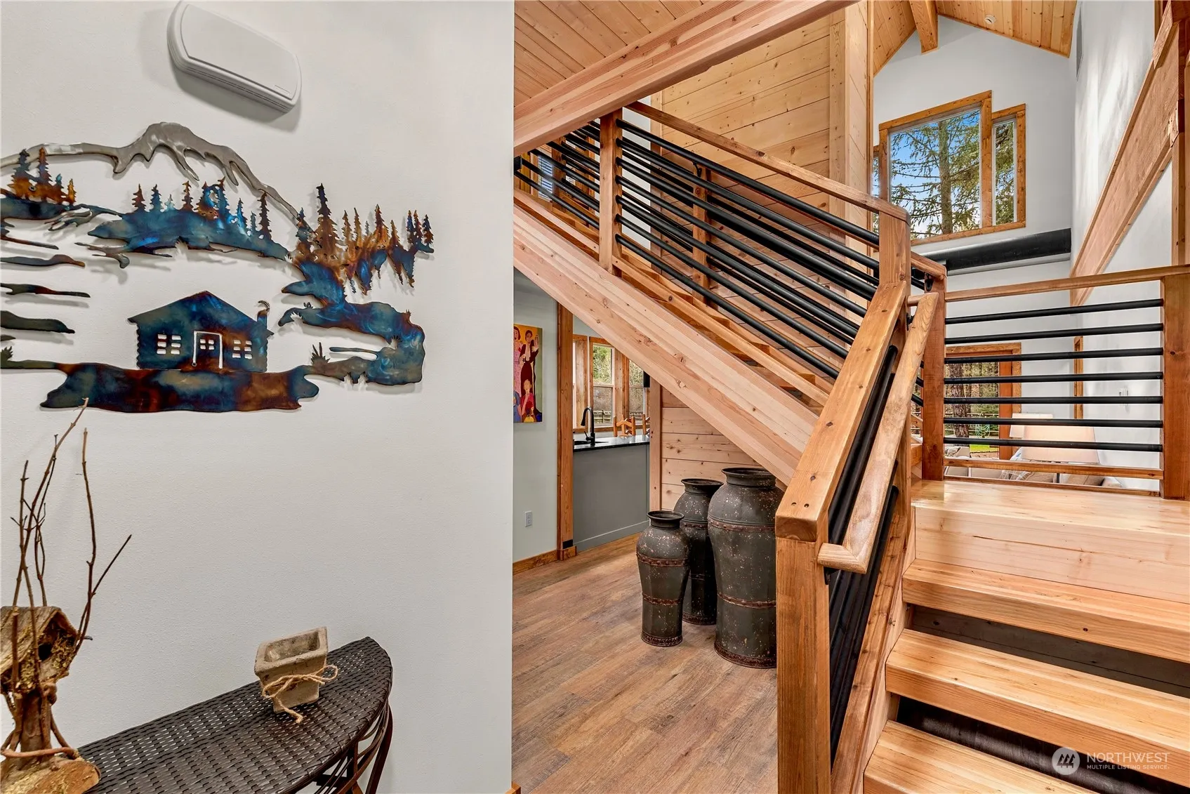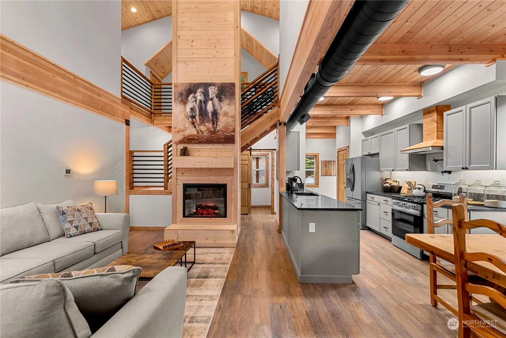 Furnished Private Mountain Modern retreat offers a perfect blend of rustic charm & contemporary luxury. Set on 1.86 private acres w/access to horseback riding trails & snowmobile routes perfect for recreation. The home boasts 3 bedrooms, 2.5 bathrooms, attached 2- car garage w/office space via a light filled breezeway. A cozy guest cottage with 3/4 bath & laundry, perfect for spillover accommodations. Amenities include wine fridge, a stable with tack room, fencing for livestock, wired generator, auto sprinklers, extra 2 car garage/shop w/storage. Enjoy the outdoors & a covered patio, TV & seating space, offering an inviting place to unwind in & enjoy all four seasons. Sold furnished including snowblower. Minutes to lake Wenatchee & Plain.
