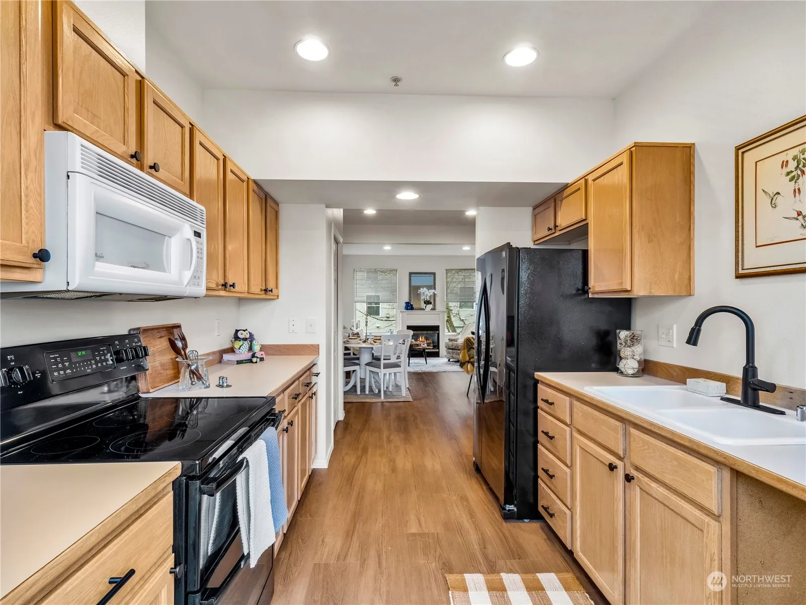 Mountain View from deck off Kitchen & second bedroom. Discover your dream townhouse in The Pointe at Surprise Lake gated community! This beautifully updated 2-bedroom, 2.5-bathroom home boasts 1,173 sq ft of living space, featuring a spacious top-floor primary suite. The cozy gas fireplace in the living room adds a warm touch, perfect for relaxing evenings. Enjoy stunning lake and mountain views from your own balcony, the convenience of a 2-car tandem garage with extra storage, freshly painted interiors, and brand-new flooring and carpet throughout. Ideally situated near shopping and freeway, this home offers the perfect blend of comfort and convenience. Don’t miss out on this incredible opportunity!