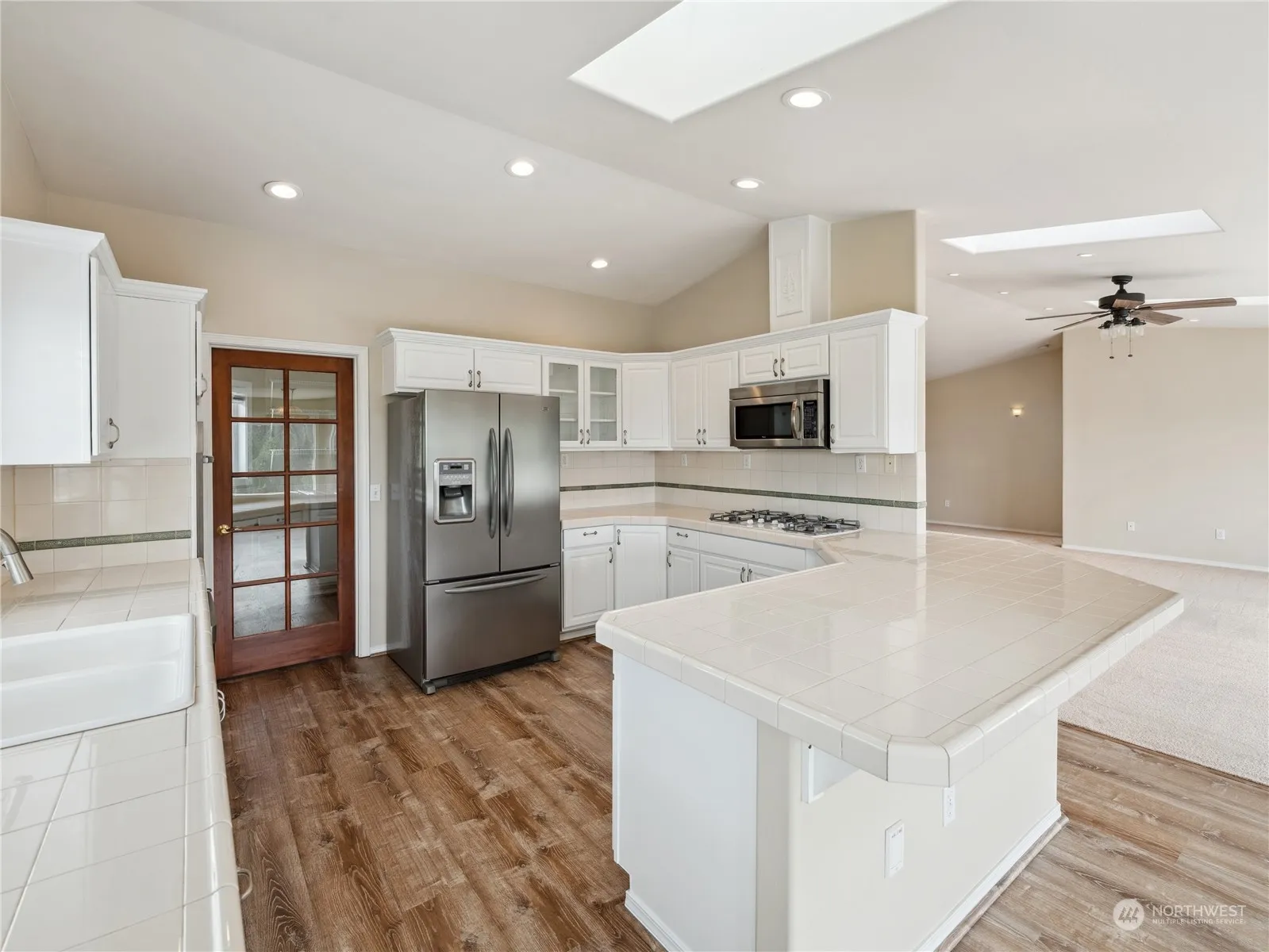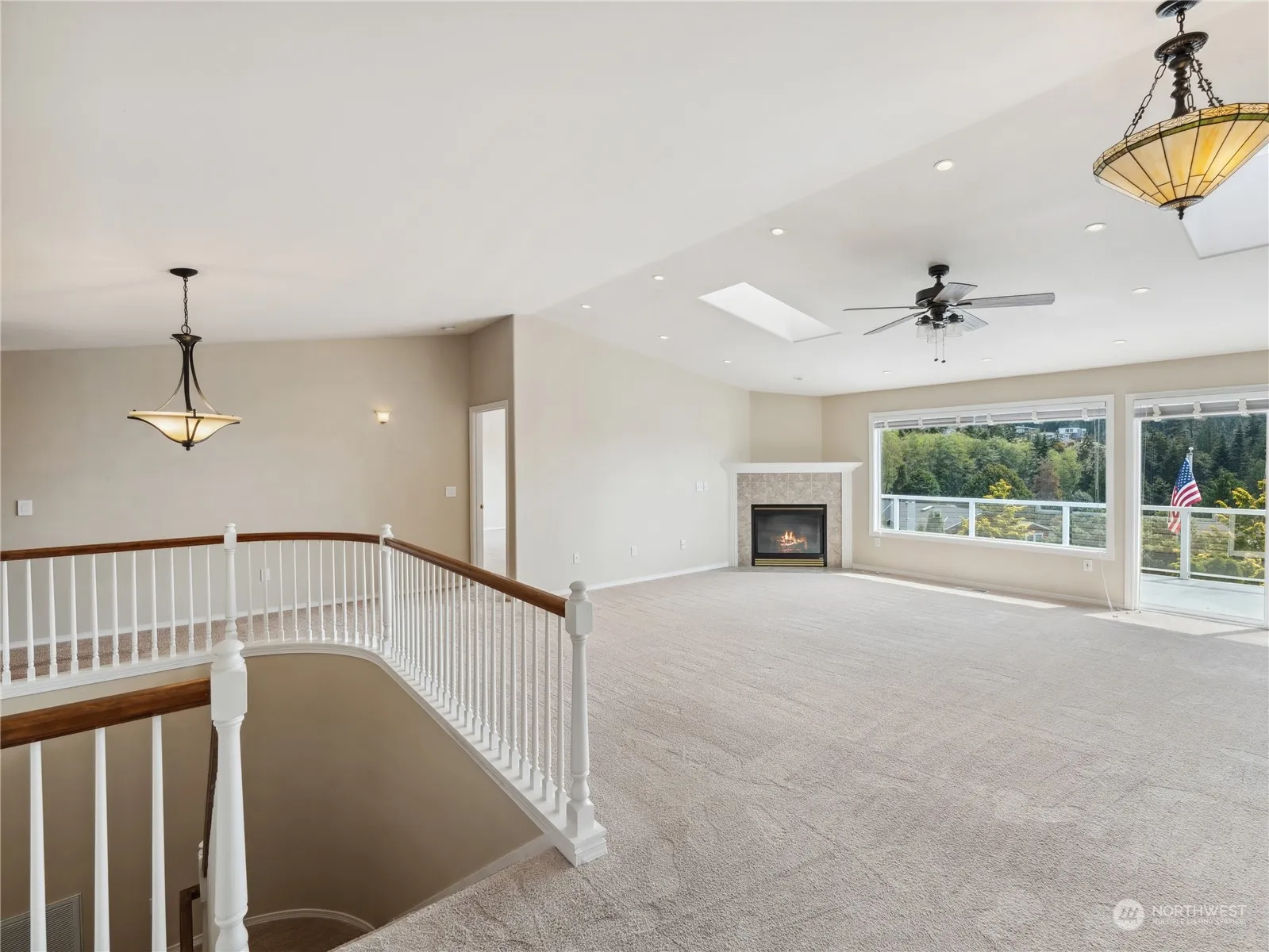 • Interior Features Bath Off Primary, Ceramic Tile, Double Pane/Storm Window, Fireplace, Jetted Tub, Skylight(s), Vaulted Ceiling(s), Walk-In Closet(s), Walk-In Pantry, Wall to Wall Carpet, Ceiling Fan(s)