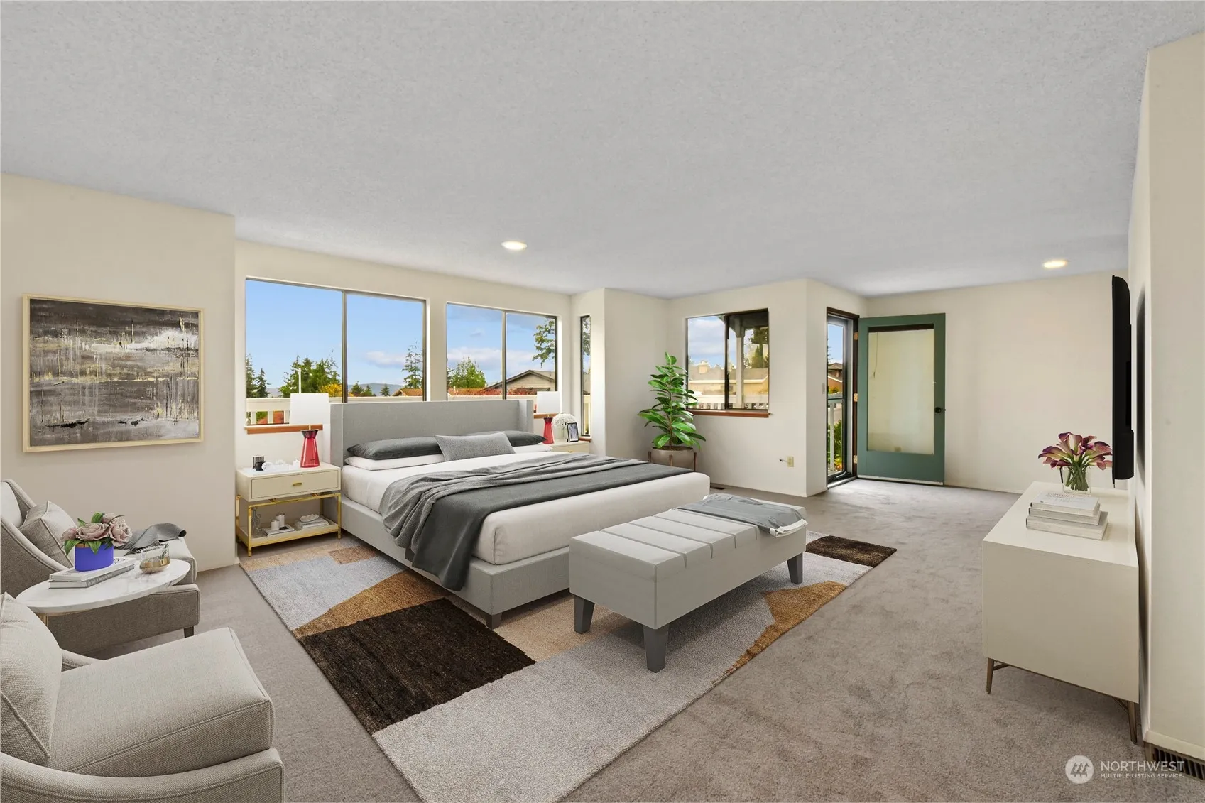 Spectacular Puget Sound, Olympic Mountain, and Whidbey Island views await you in this stunning home, with cathedral style high ceilings, abundance of natural light and openness. Primary bedroom with en suite and private deck to enjoy breathtaking PNW sunsets, large walk in closet. Two sliders to access your expansive deck and private woodsy backyard oasis, backing a serene greenbelt, replete with flora and fauna, excellent for entertaining, summertime BBQs and play. Lower features a rec room, 4th bedroom and office/den/bonus (or 5th bedroom), ideal for multi generational living / MIL with a private entrance. Spacious garage has a nice workshop area. Quiet and on a cul-de-sac. New roof, RV parking, no HOA. Award winning Mukilteo schools.