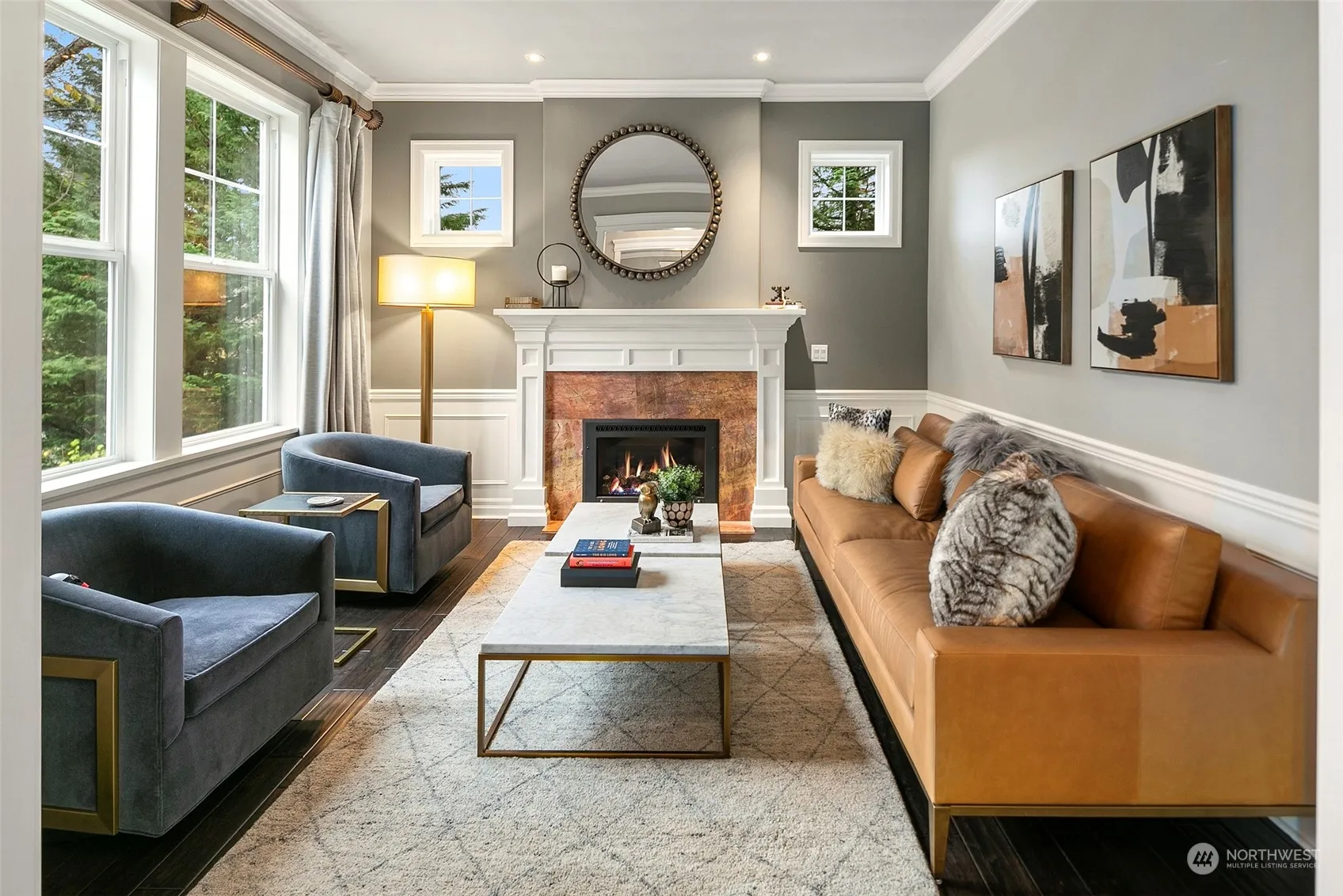 Luxurious Golf Course Living! A rare chance to own this fully remodeled custom-built on the 7th Fairway. Cozy up to sweeping views of the Cascade Mountains & golf course from the soaring two-story family room w/ box-beam ceiling, spacious guest rooms & the inviting Primary Suite featuring vaulted ceilings, dual closets, frameless shower & a floating toilet. This 4BR + large den/5th BR, bonus room home offers comfort & elegance with a chef’s kitchen w/ slab quartz counters, premium appl & white cabinetry. Large laundry w/ sink & plenty of storage. French doors open to a fall-perfect outdoor oasis: covered gazebo, built-in BBQ, fridge & a gas firepit for cool evenings. Custom upgrades include tilework, RH lighting, 3 car garage w/ epoxy flr.