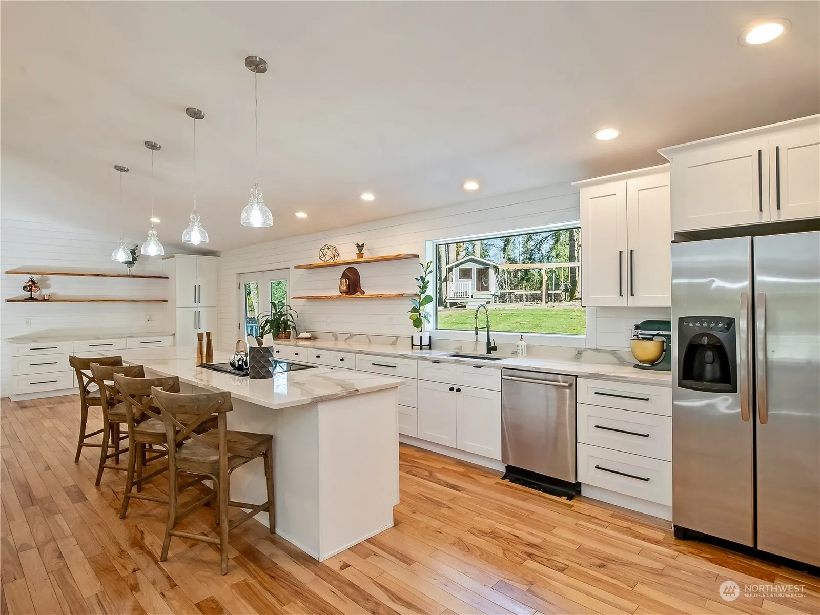 Nestled on 2 serene acres in the desirable Tahoma School District, this remodeled 4-bedroom, 2.5-bath rambler blends comfort & functionality. Enjoy easy access to Hwy 18 & Maple Valley Hwy, while retreating to your private paradise. The open floor plan features quartz countertops, stainless steel appliances, & a spacious kitchen with wine/bar area. Enjoy luxury bathrooms throughout, while Mini-splits ensure comfort year-round. Outside, entertain on two decks or relax in the fenced-in above-ground pool & hot tub. The property includes a huge 2,000 sq. ft. garage/carport with EV charger, RV parking, & outbuildings. Fun awaits with a horseshoe pit, play structure, trampoline, & fire pit. Room for all your toys—this is the perfect forever home!