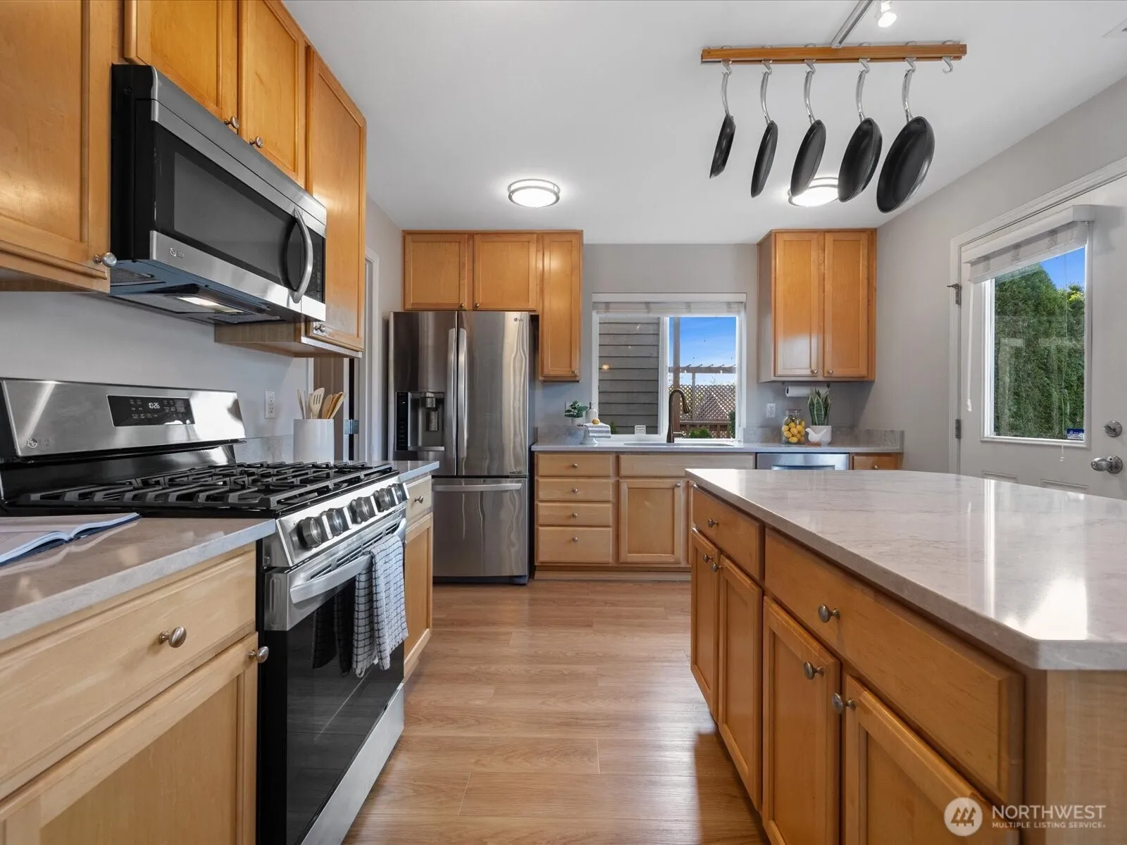 Impeccably maintained & elegantly appointed home! This 3 bedroom, 2.5 bath residence with a 2-car garage is tucked away on a tranquil street in the heart of Redmond Ridge. The main level showcases an office/den, a bright well finished kitchen with new quartz countertops, and sophisticated updates including brand-new luxury plank flooring and fresh paint throughout. Upstairs, three generously sized bedrooms provide comfort and abundant storage. New furnace in 2024. Positioned within the sought-after Rosa Parks Elementary and Timberline Middle School boundaries, this home offers effortless access to parks, walking trails, and convenient transit. Move-in ready and refined, it’s the perfect balance of style, comfort, and convenience.