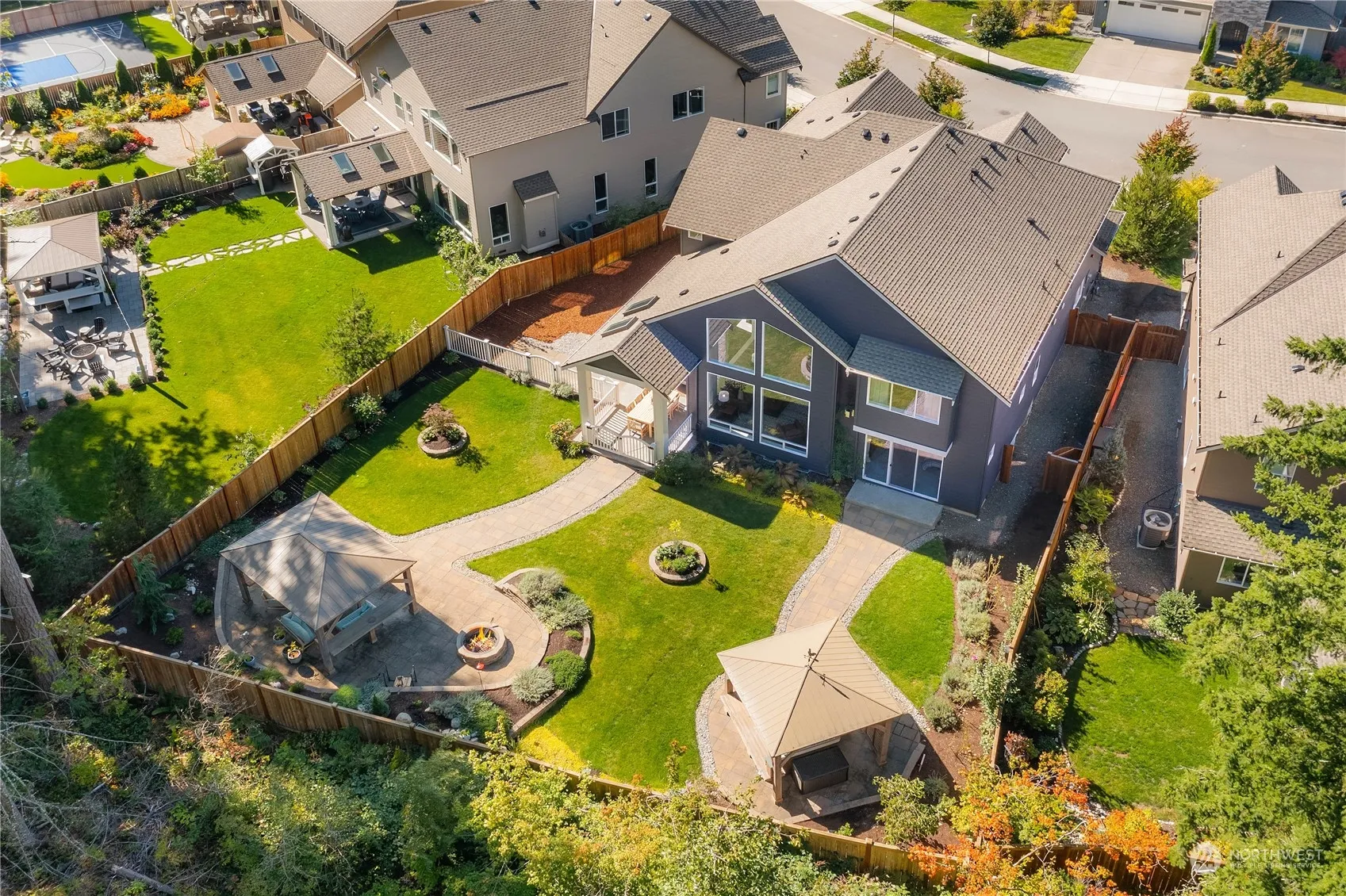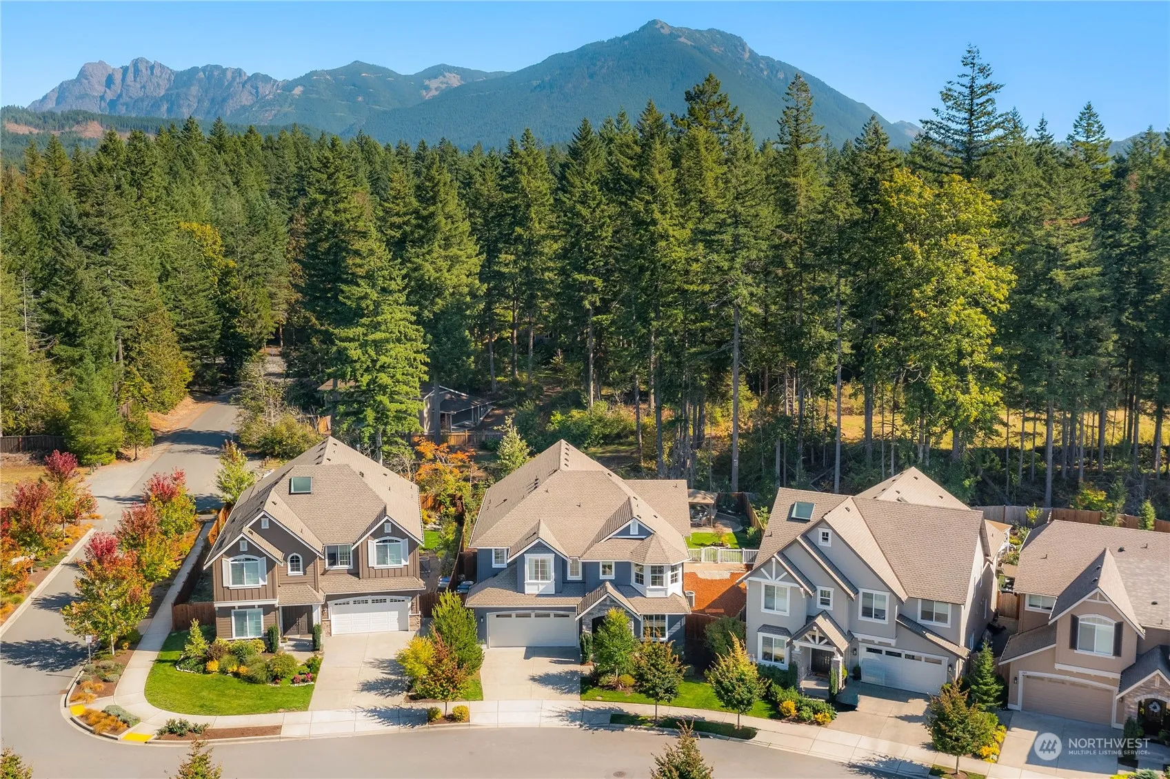 Stunning Murray Franklyn home in The Ridge at Tannerwood. This Sagecrest floorplan offers 5 bedrooms, 5 baths, a main floor guest suite, and a two-story vaulted great room with a wall of windows and a floor-to-ceiling stone fireplace framed by custom built-ins. The main floor also includes a den, with a curved staircase leading to an upstairs bonus room. The chef’s kitchen features a large island, walk-in and butler’s pantries, and abundant cabinetry. Set on a premium lot with Mt. Si views, the private backyard backs onto open space and includes three covered patios. Enjoy direct access to river trails and a neighborhood trail system, all just minutes from downtown North Bend, award-winning schools, and I-90 access.