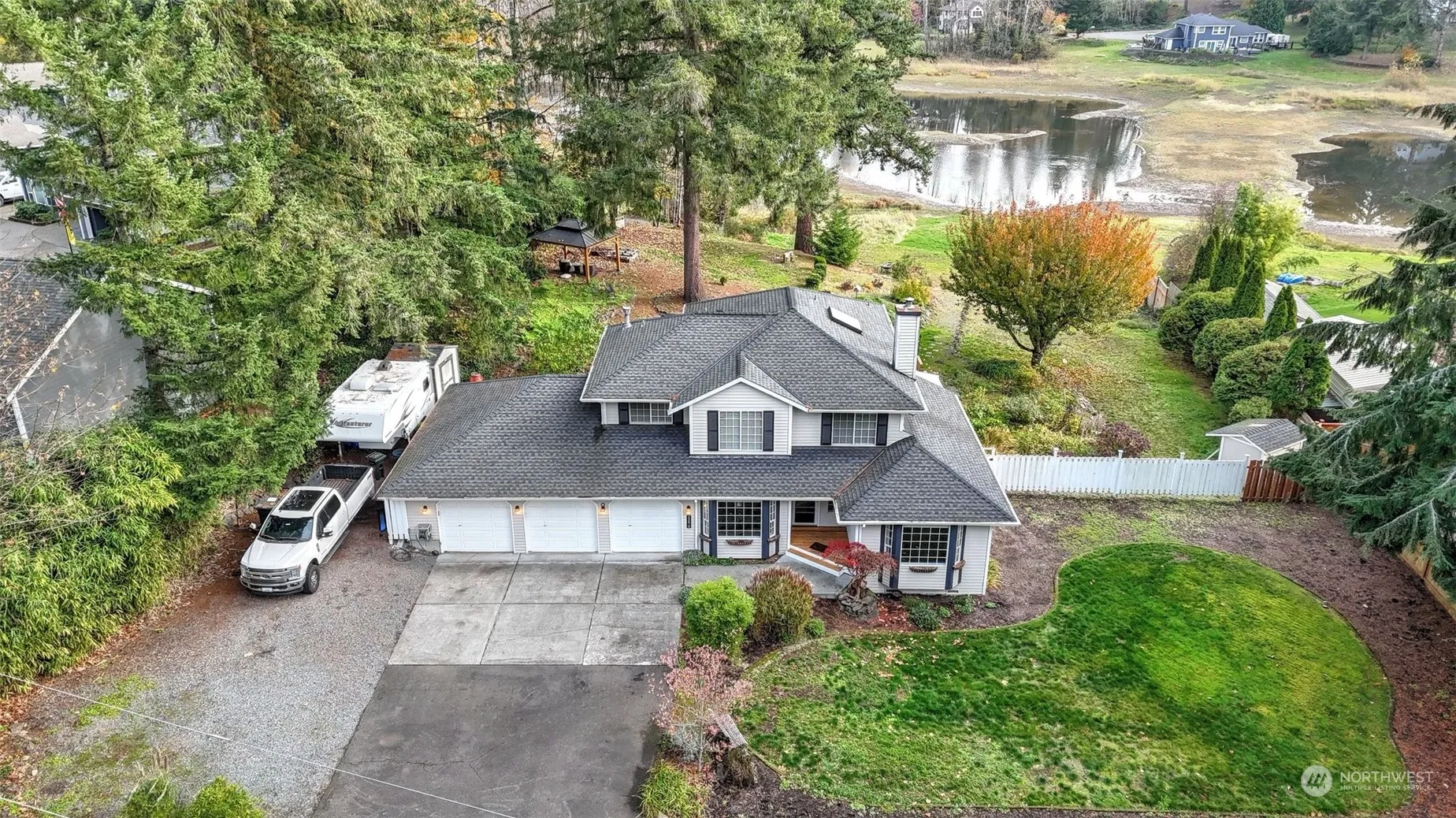 Nestled in the heart of Black Diamond on Horseshoe Lake, this charming home combines serene living while being just minutes to modern amenities. Featuring spacious, sunlit rooms, a beautifully designed open-concept kitchen, & a cozy living area, this home is perfect for both relaxation & gatherings. The expansive backyard offers endless possibilities for outdoor activities or quiet evenings under the stars w/an entertainment sized deck, gazebo & 121′ of lakefront property. Enjoy newer gutters, beautiful engineered hardwoods & more! Located near scenic parks, schools, & convenient amenities, this residence provides an ideal balance of comfort, style, & convenience. Don’t miss the opportunity to make this wonderful property your forever home!