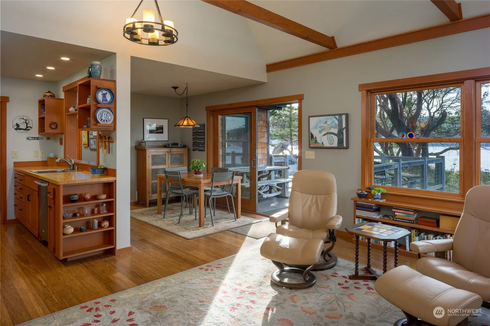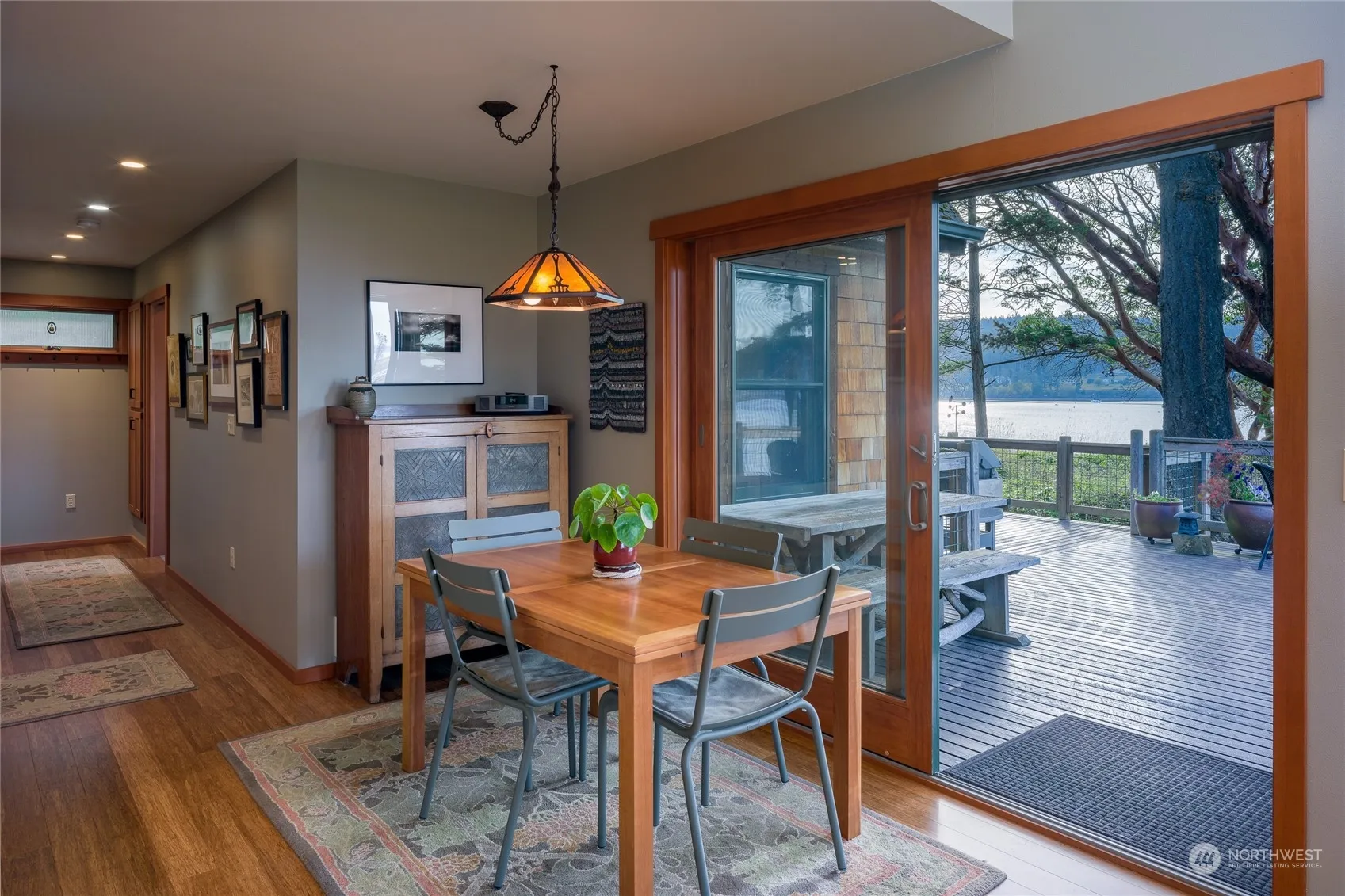 This thoughtfully curated jewel box of a home on Lopez Island looks out over Fisherman Bay and San Juan Channel all the way to the Olympics. The 2 bdrm, 2 bath waterfront house on low bank with tidelands, fenced dog run, deck, and hot tub is privately situated amongst majestic firs and madrones on a picturesque rocky point. Island design and craftsmanship at its best, from the custom cabinetry and woodwork to the high end windows, doors, finishes, and appliances. The shop/garage includes an upstairs bunkroom/office space with built-in storage and another extraordinary water view. State of the art catchment system with 10,000 gallons of storage. Excellent location on the peninsula, minutes from trails, beaches, the marina, and Lopez Village.