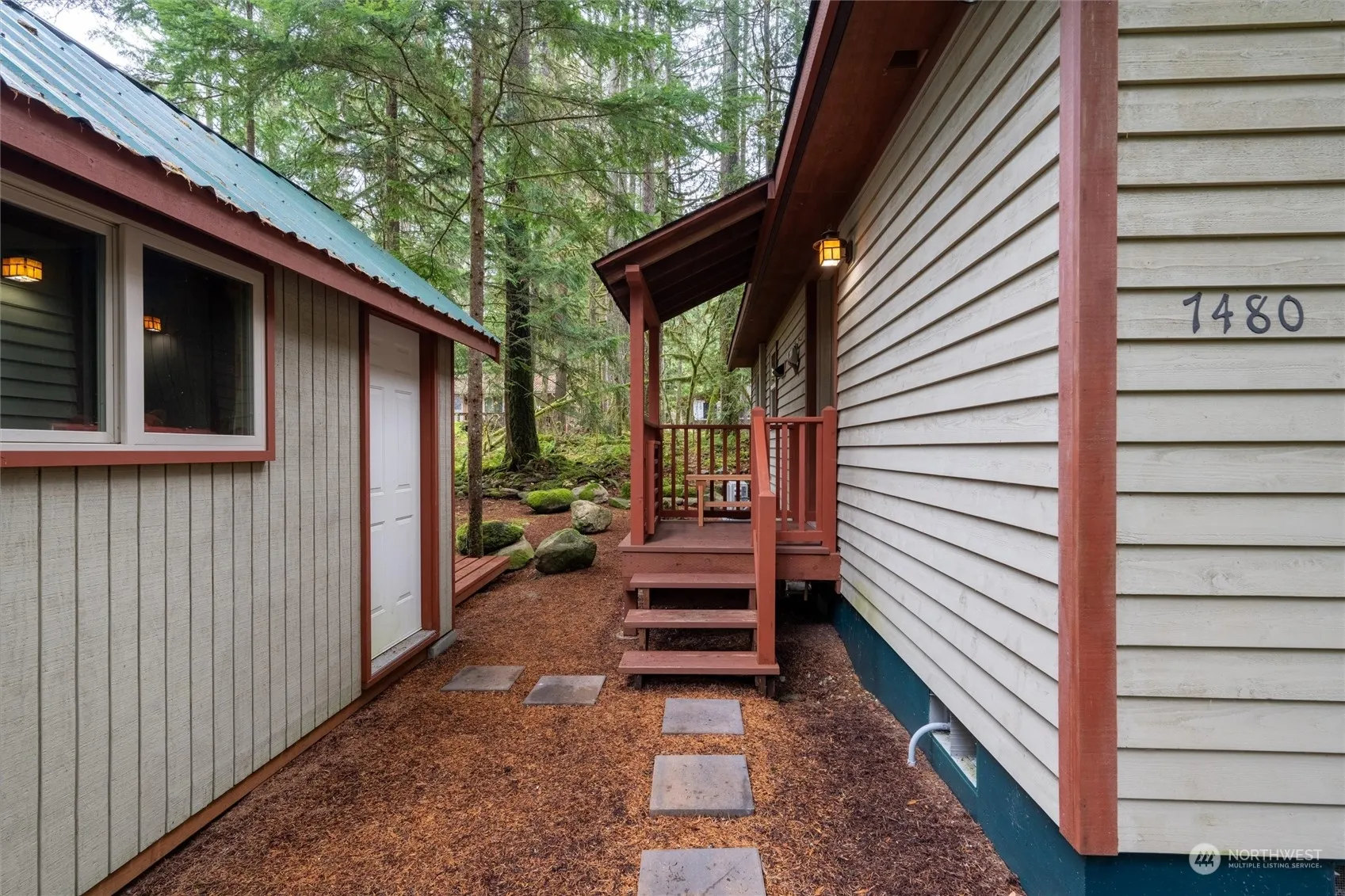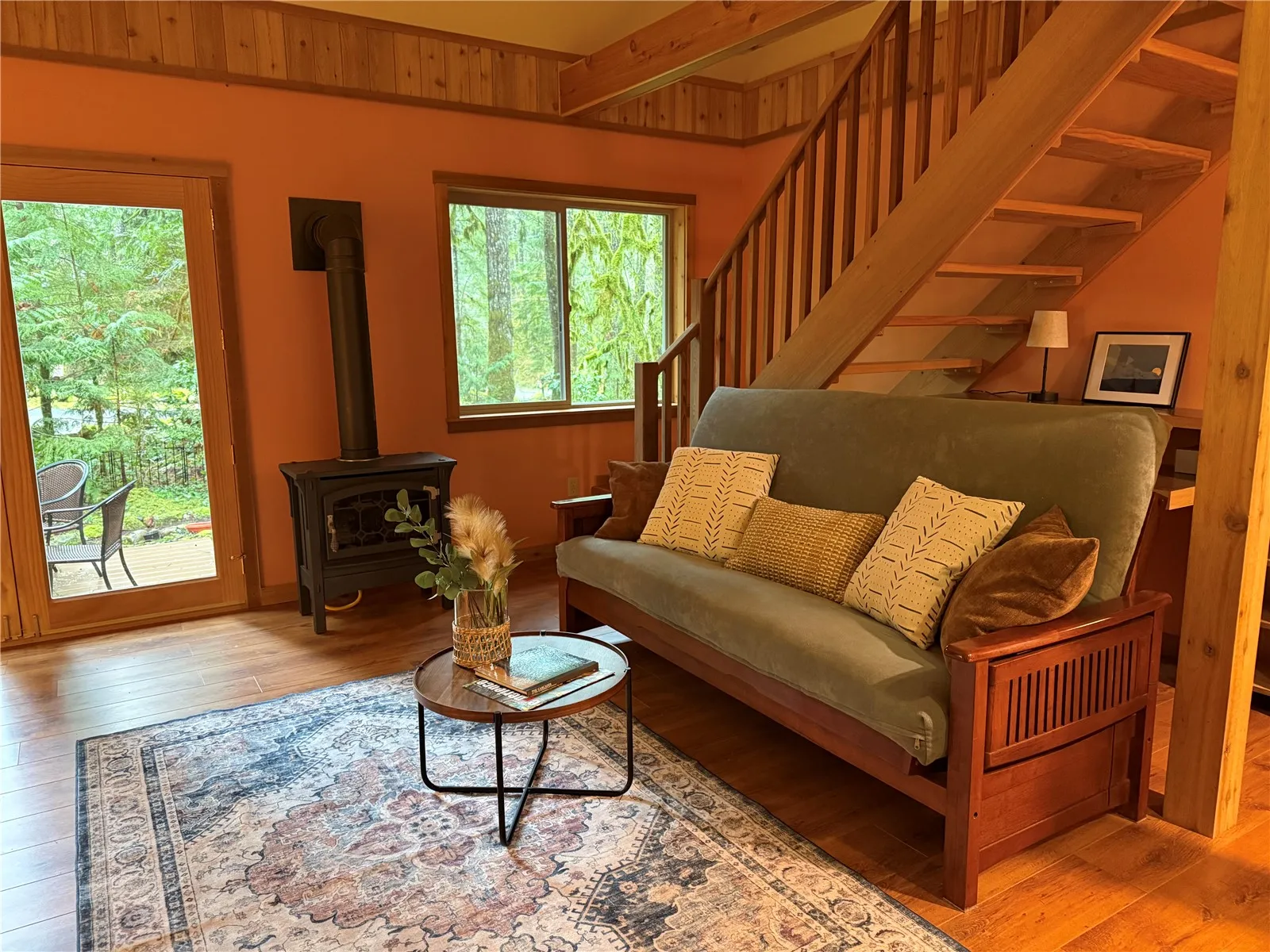 Ideal STR opportunity! This cozy mountain cabin showcases solid construction and craftsmanship. A charming retreat that has been gently used and features upgrades throughout, including a new mini-split & new water lines. Inside, enjoy the warmth of the fireplace under high lofted ceilings that highlight beautiful woodwork. The main floor primary suite is complemented by an additional bedroom and full bath upstairs. Step outside the living room to your private deck and take in the peaceful nature that surrounds you. This property is situated among the trees, with a detached 180 sqft workshop and covered parking. Located in the Glacier Springs neighborhood with river access, surrounded by trails and 30 minutes to the Mt Baker Ski Area.