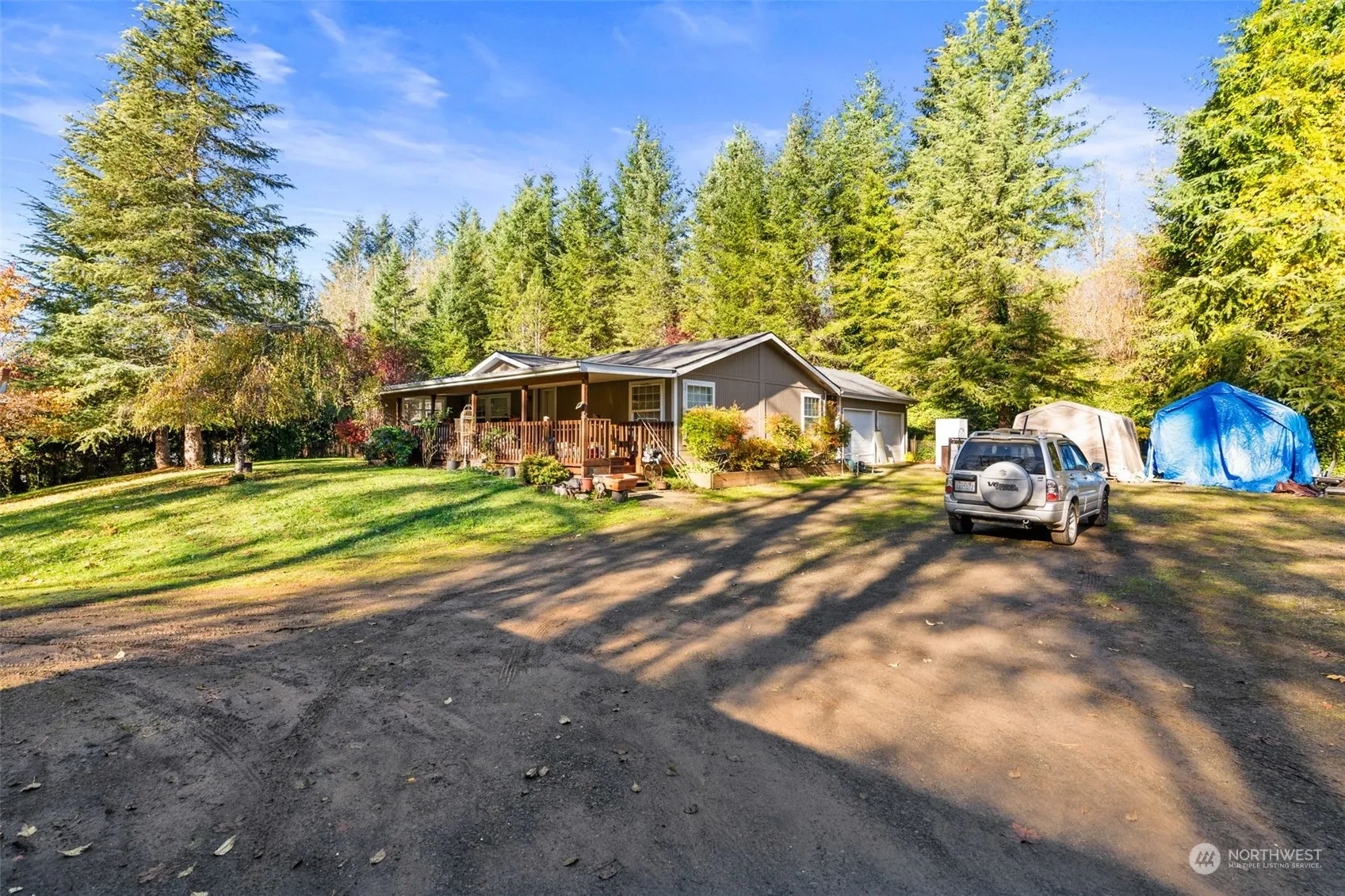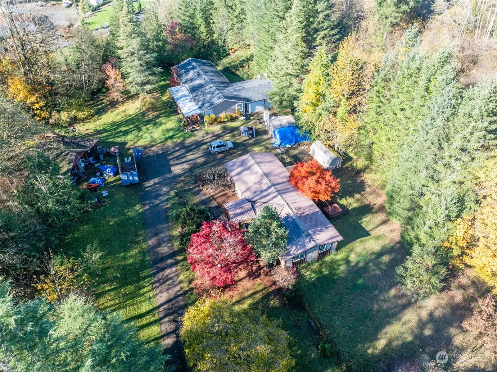 VERY AFFORDABLE opportunity for possible 2 HOMES (buyer to verify w/county all uses)-3,195 sq ft, 6 bedrooms, 4 baths, 2 Manufactured homes w/a 2 car garage plus shop/barn with upstairs on 5+ Acres in wonderful area close to I-5. UPDATED Main home owner is living in is 1755 Sq ft w/3 bedrooms, 2 baths, open & spacious. Beautiful engineered floors through out. Enjoy the spacious Primary suite. Beautiful kitchen, Formal Dining, & more! The 2nd manufactured home that is 1440 sq ft has had kitchen removed and is used as storage. The setting is beautiful!! 2 car garage plus separate shop/barn/poss 2nd garage? Plenty of space for garden beds, fruit trees, animals, or ? Previously property had horses. Close in~ only 15 minutes to Battleground.