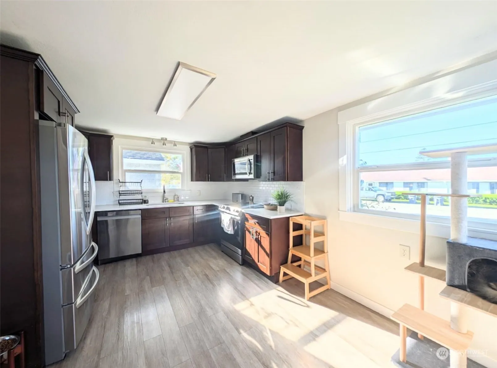 Welcome to this spacious 3-bedroom, 1-bathroom home nestled on a generous corner lot, offering both comfort and convenience. This well-maintained property features a large 2-car garage, a covered carport with ample space for an RV, and beautiful outdoor landscaping, including mature fruit trees, blueberry bushes, rose bushes, and lilacs. Large rooms with natural light and plenty of closet space.The new roof (January 2022), new heater (early 2023), and a new hot water heater (2022) as well a newer appliances offer peace of mind and efficiency.This lovely home offers a combination of indoor comfort and outdoor charm.
