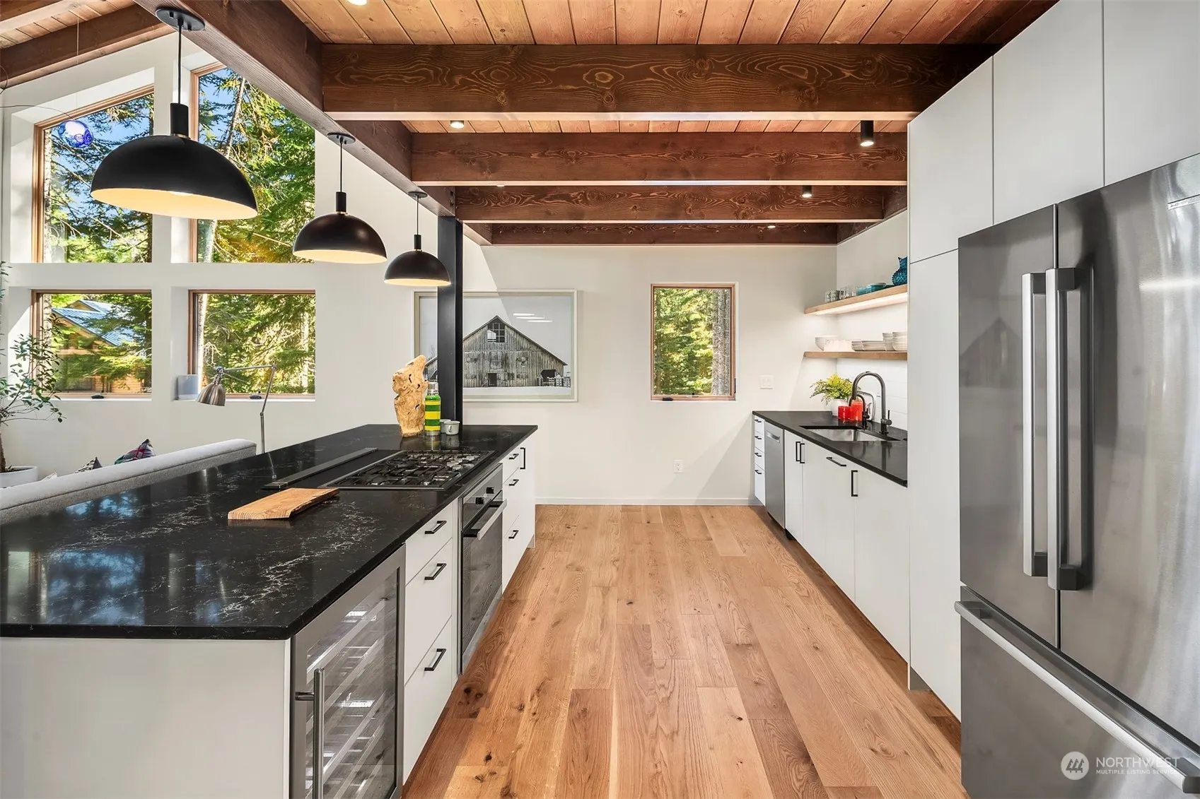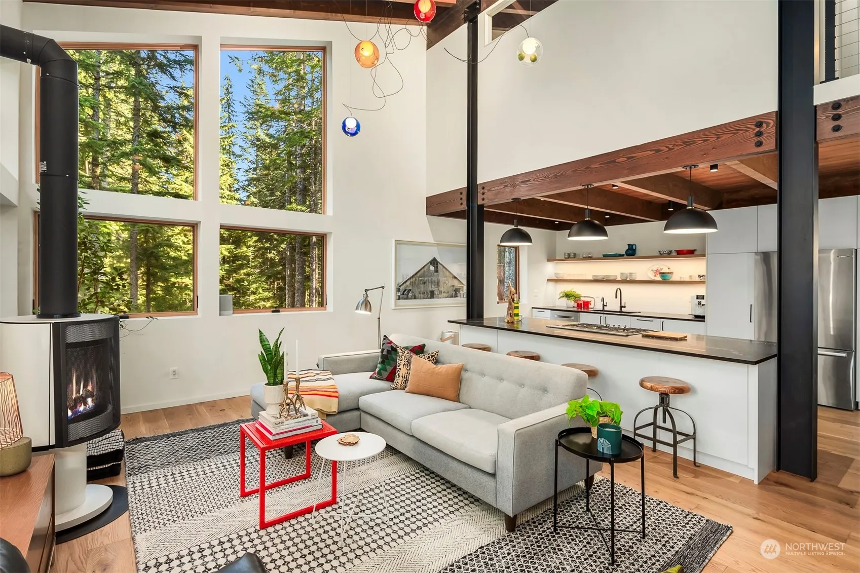 The ultimate, contemporary PNW mtn home, nestled in a private wooded setting in the Mountain Creek at Silver Fir community. Set back from the street, your complete mtn retreat awaits you, incl. 675 sq. ft. of outdoor living space w/nordic sauna & shower, hot tub, fire pit, & covered dining. Extraordinary great room & gourmet kitchen for social gatherings or quiet time by the fire. Spacious gear room & exercise room w/in-floor radiant heat. Coast down the road to ski, board, & mtn bike community easement leading to the Silver Fir Chair & Lodge. Two primary suites, one w/steam shower. Crack open the bdrm windows & drift off to the sound of your own flowing mtn creek. Everything set for managed short term rentals if desired. An amazing escape!