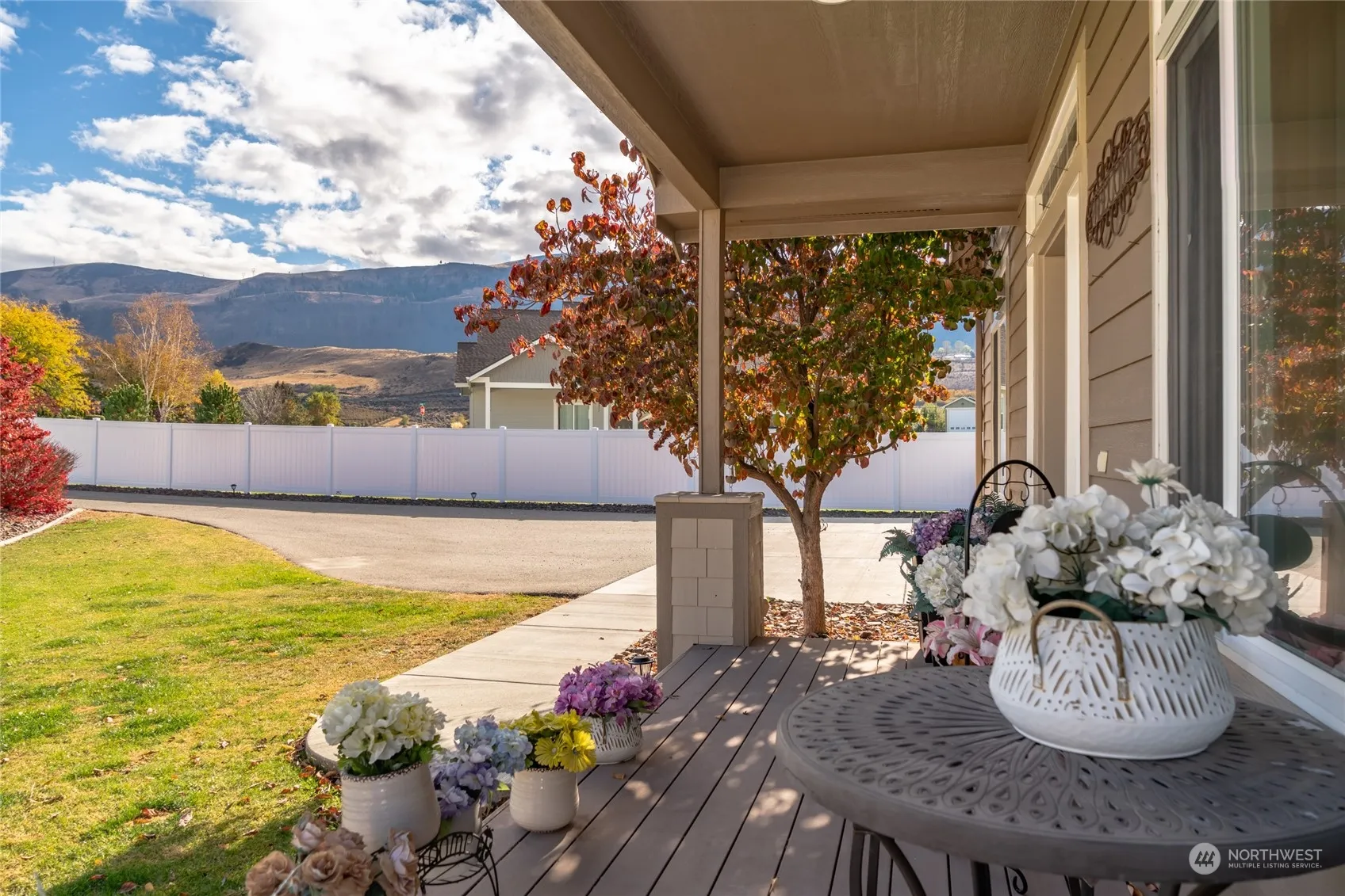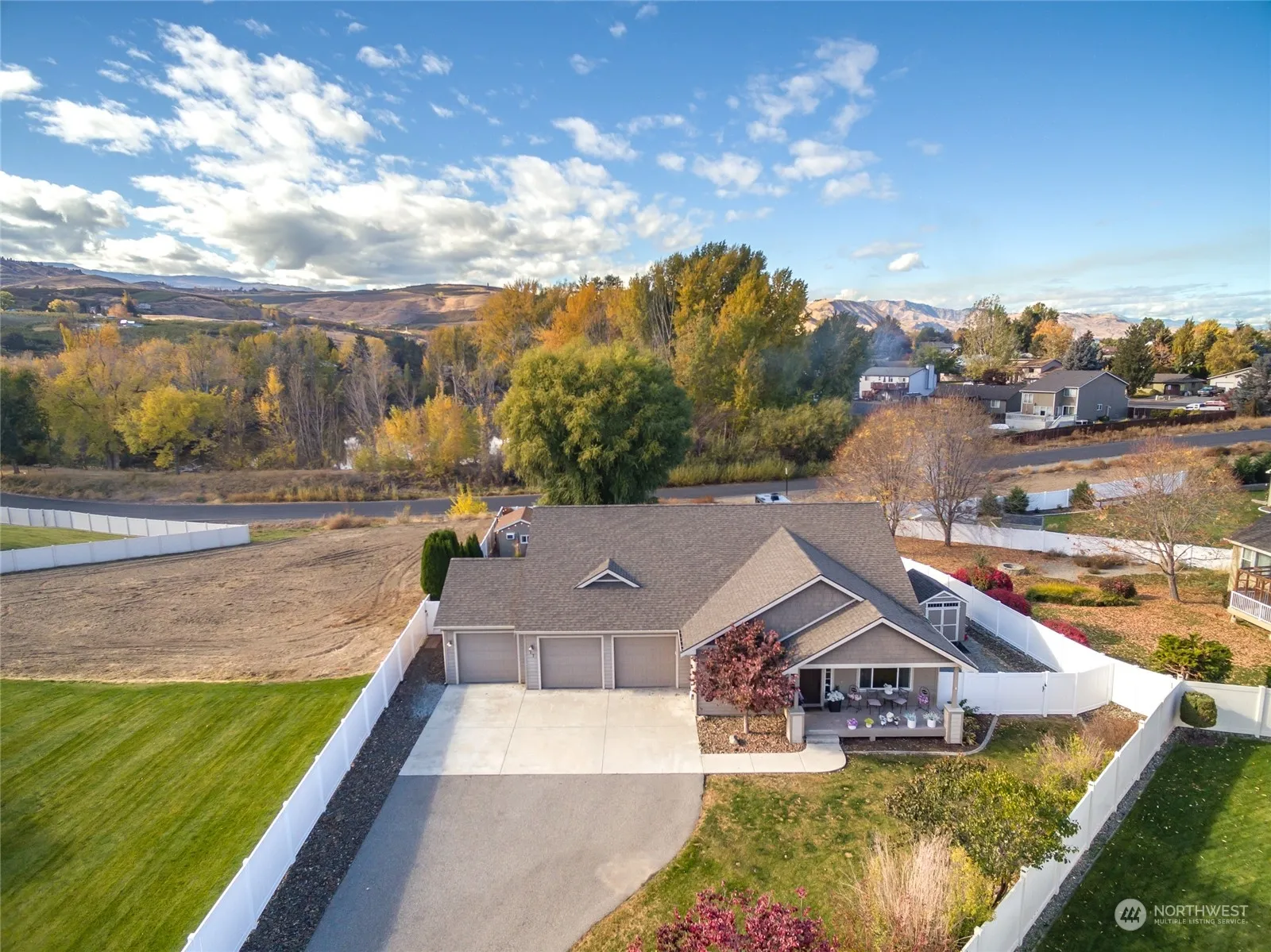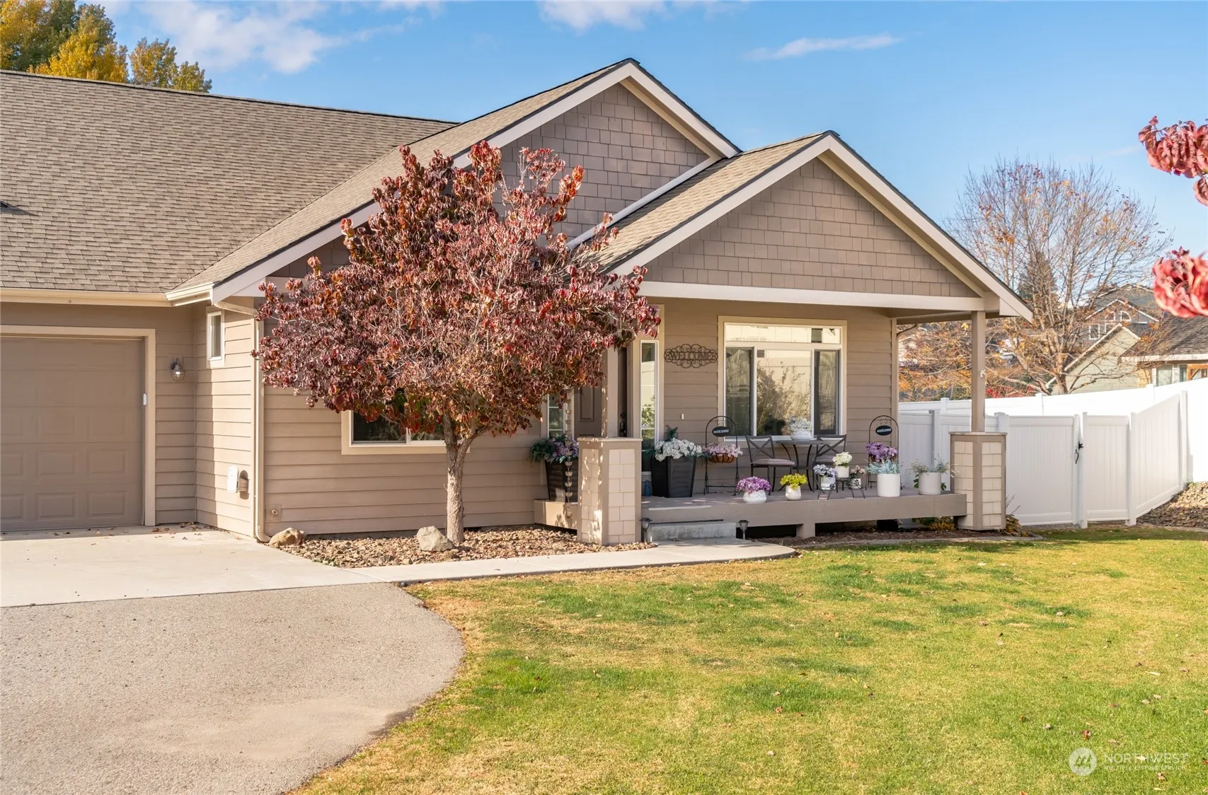 This charming one-level home offers comfortable living on a spacious lot. The inviting living room features a gas fireplace, creating a cozy atmosphere, while the kitchen boasts granite countertops and stainless steel appliances. It flows seamlessly into the dining area, where large windows bring in natural light. The private backyard retreat includes a deck, hot tub, and covered pergola, perfect for entertaining or relaxing. The fully fenced yard also has a playhouse and space for outdoor gatherings. With a low-cost irrigation and underground sprinkler system, it’s ideal for gardening. The primary suite offers a jetted tub and walk-in closet. Extras include an office, community RV parking, and just a 15-minute drive to Wenatchee.