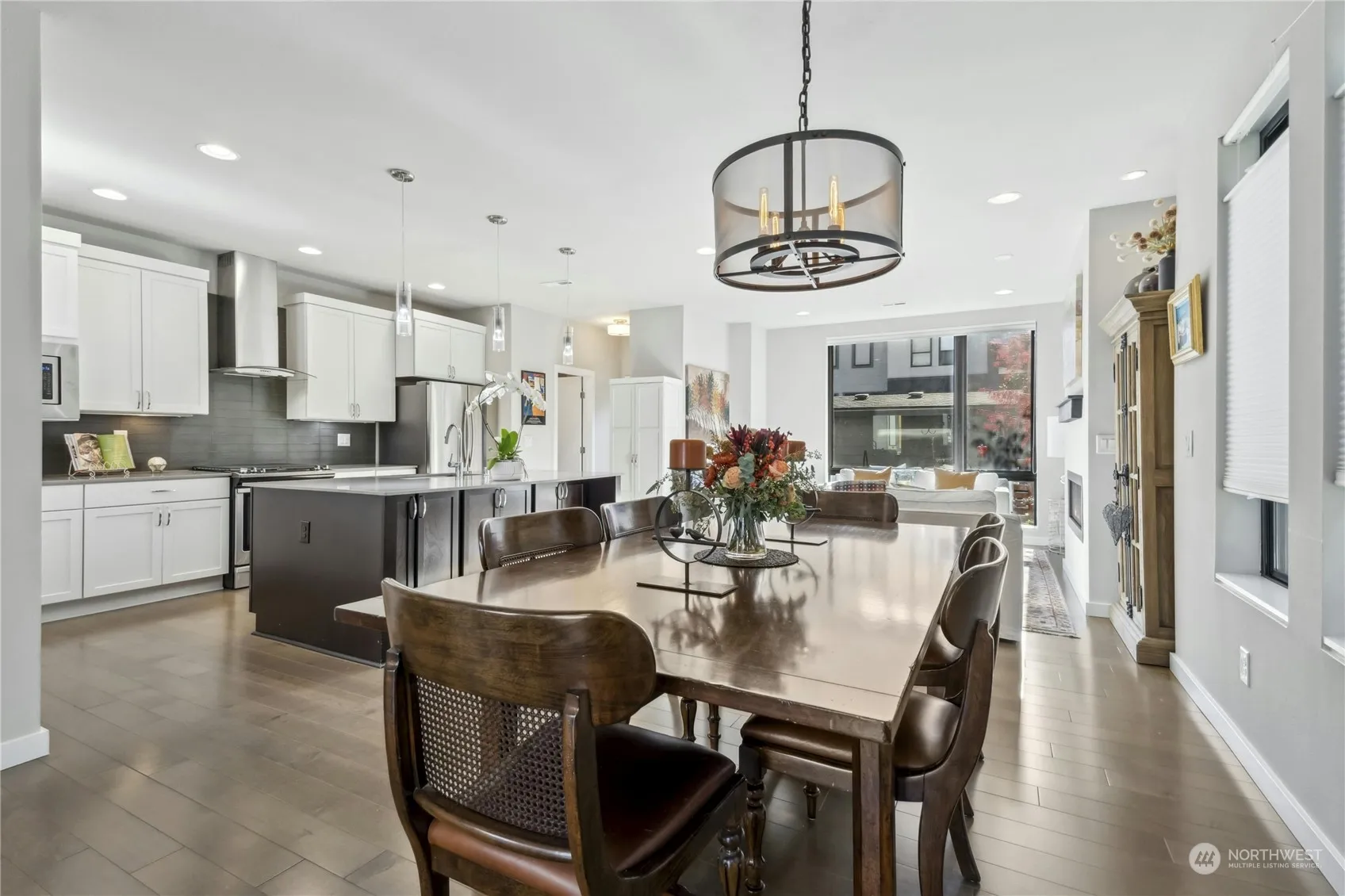 Simply Gorgeous Spacious End Unit Home. Lives large like a single family home with the ease of simple maintenance. An open floorplan with tons of natural light & incredible finishes. Main floor features living room, dining room, kitchen, half bath & family room/office. Beautiful quartz counters, elegant hardwood floors & tons of storage. Upstairs you will find laundry room, 2 full baths & 3 spacious bedrooms – primary has spa-like bath & huge walk-in closet. Peaceful outdoor gated patio with tons of mature landscaping. Air Conditioning too! Roomy 2 car garage with storage. Amazing location, walking distance to shopping, dining, parks, trails, Lake Boren, freeways & so much more. Easy commute to Seattle, airport, mountains. Welcome Home!