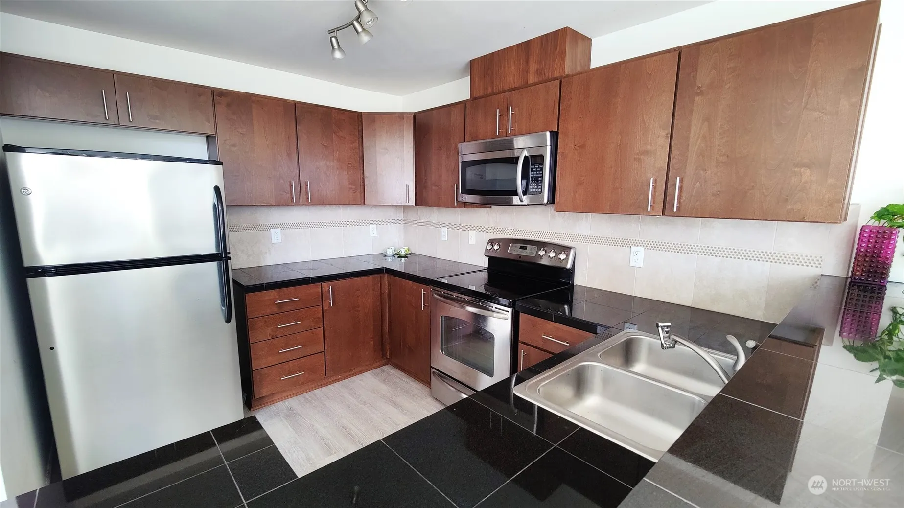 Welcome to this charming top-floor, corner condo with stunning valley and mountain views, including Mt. Rainier, from every window. This 2-bedroom, 2-bathroom unit boasts upgraded kitchen, vaulted ceilings and oversized windows, flooding the spacious living areas with natural light. Enjoy your morning coffee or evening sunsets on the balcony. This condo includes the convenience of an attached 1-car garage and is situated in a quiet and beautiful neighborhood with parks, playground, and walking trails nearby. Conveniently located near seaTac airport, shopping and major highways on the West Hill, this top-floor unit is truly a gem.