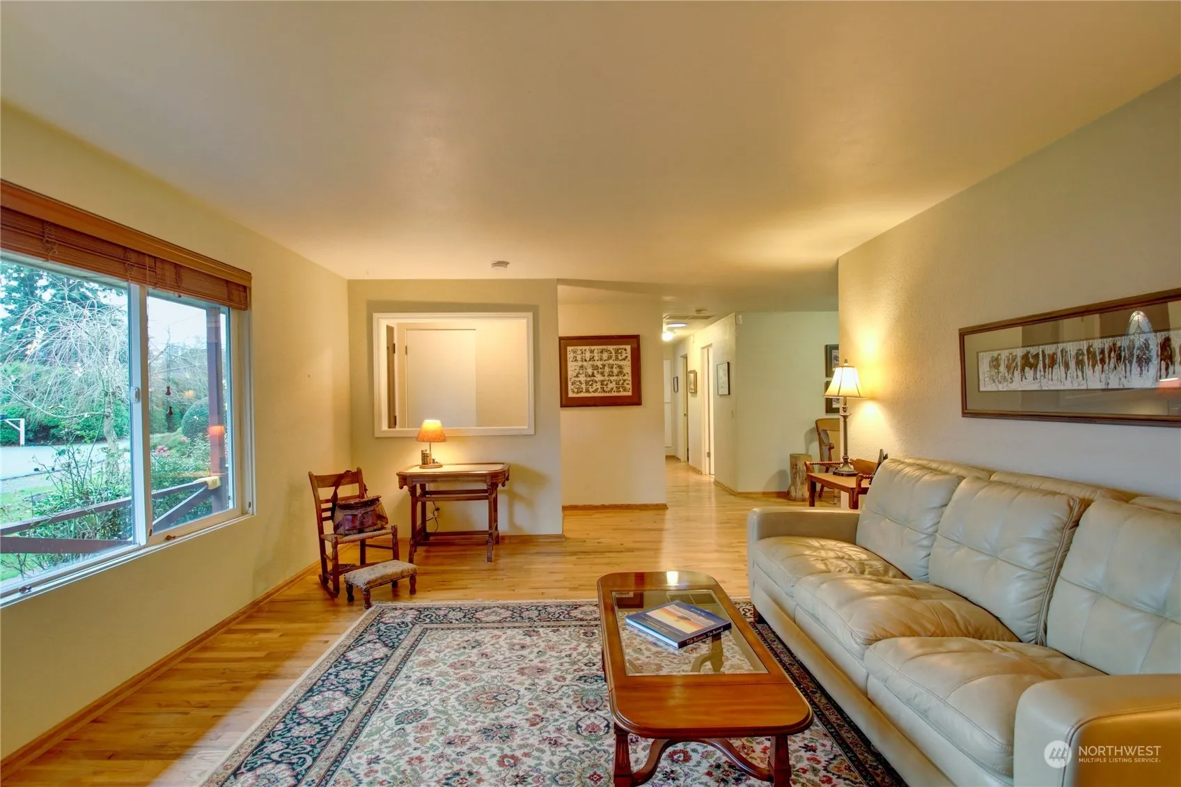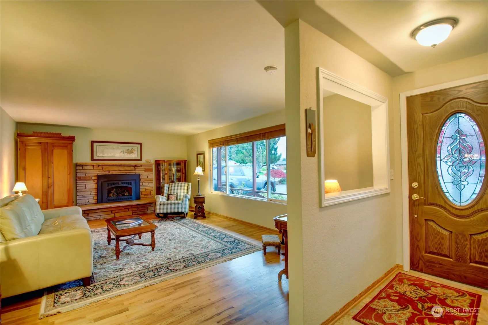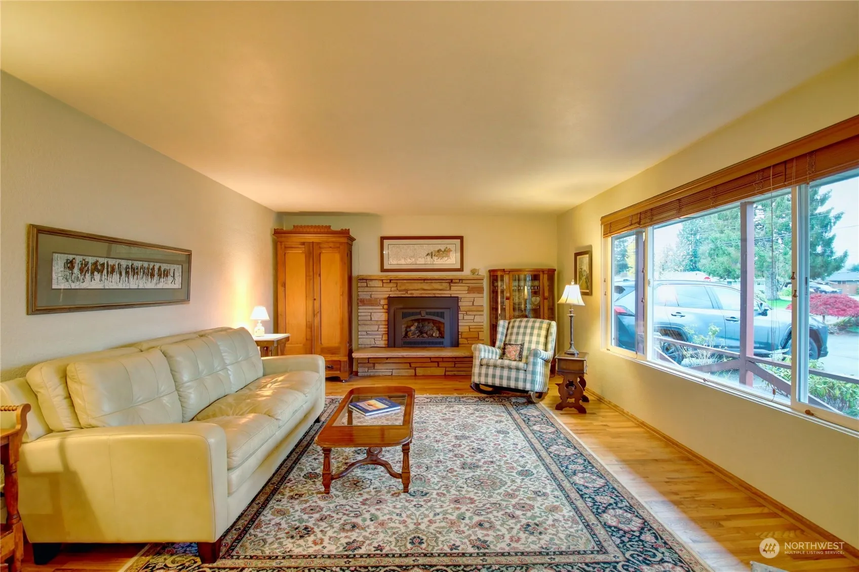 Pride of ownership through-out!! Perfectly blending yesterday with today, showcasing gleaming original hardwood floors, and pine ceiling in the family room. Living room has Vintage style fireplace with gas insert, oversize windows with views of the mountains and hills. This home feels open and spacious with beautifully remodeled kitchen, SS appliances and granite counter tops. Large family room with french doors leading to the patio and your 1/3 acre fully fenced park-like back yard with out building. RV/boat parking. Newer vinyl windows, heat pump, hot water heater and furnace,custom blinds, solar tubes, both bathrooms updated. Close to schools, shops, restaraunts, and all out door recreation. Minutes to I-5, HWY 20. A must see today.