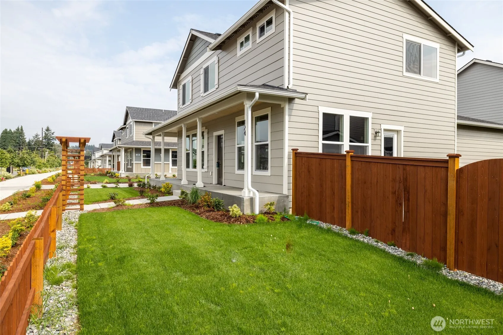 This is a newer community, Garden Meadows! This 3 bed/2-1/2 bath two story has a gas fireplace in the great room. LVP flooring runs throughout the great room, kitchen & dining area. Kitchen has quartz counters, subway tile backsplash, S/S gas range, micro hood, dishwasher & fridge. Ductless mini splits in living areas and bedrooms for heat/AC. Upstairs utility. Cement siding. Gas connection for BBQ on back porch. Landscaped & fence backyard. 2 car garage. The community has a playground, basketball court & picnic area.