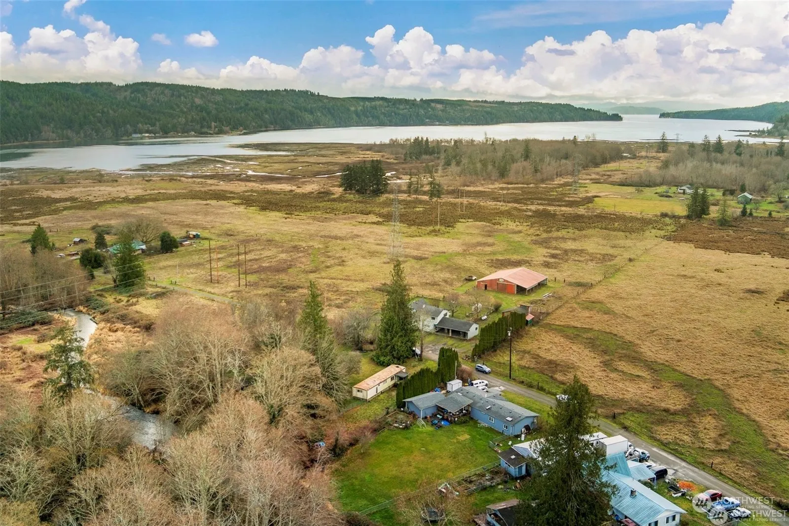 Unobstructed views of Quilcene Bay and mountains from this historic property that has remained in the family for generations, with original deed signed by Pres. Ulyss. S. Grant, and just a two minute walk to the Bay for fishing, kayaking, and duck hunting! This listing includes 4 parcels for a total of 11.7 acres. The first parcel has a 3,000 sq ft home w/ 3 bedrooms on 1.12ac (needs a little TLC), with a 384 sq ft shop and a 60 sq ft chicken coop. Included next door is an adjacent 9.86ac agricultural parcel, w/ massive 5,000 sq ft barn w/power, great for livestock, hay, etc. (zoned AP-20). Across the road are two RIVERFRONT parcels along Little Quilcene River (.43ac zoned AP-20) and (.29ac zoned RR-5 w/manuf home). Estate sale, sold as-is.