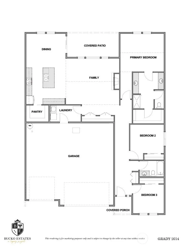 SPECIAL FINANCING AVAILABLE! SELLER PAID INTEREST RATE BUYDOWN AVAILABLE!! Welcome to Bucko Estates a new legacy community! This Grady floorplan is built on a premium VIEW lot bordering the greenbelt/creek. It has 3 bed/1.75 bath & a large 3 CAR GARAGE! There are almost $20K in upgrades. The great room w/gas fireplace, kitchen & dining room have LVP flooring. The kitchen has upgraded cabinets, a gas range, a walk in pantry & an island. Quartz countertops are throughout the home! The carpet, lights & interior doors are all upgraded. The primary bedroom has a vaulted ceiling. The ensuite bath has a tile floor & tile shower, double sinks, & a walk in closet. There is a covered patio out back. The yard is landscaped & the backyard is fenced.