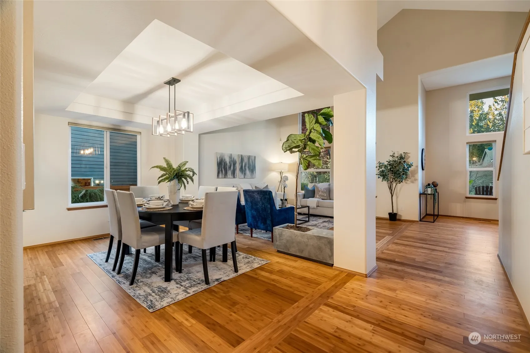 This stunning 4-bed, 2.5-bath home might be exactly what you’ve been waiting for! Impressive entry with functional floor plan showcases soaring ceilings & solid bamboo floors on main level. Gorgeous remodeled kitchen features freshly painted cabinets, modern hardware, quartz counters & new SS appliances flowing into family room w/ cozy fireplace. Incredible primary suite offers a luxurious retreat w/ the remodeled bathroom complete w/ glass-framed shower, double vanity, & inviting soaker tub. Brand new carpet upstairs, fresh paint throughout, serene backyard w/ mature landscaping, hot tub, and refreshed exterior, this move-in-ready gem has it all! Many more updates to list incl A/C, new W/D, and home kept impeccably maintained in & out.