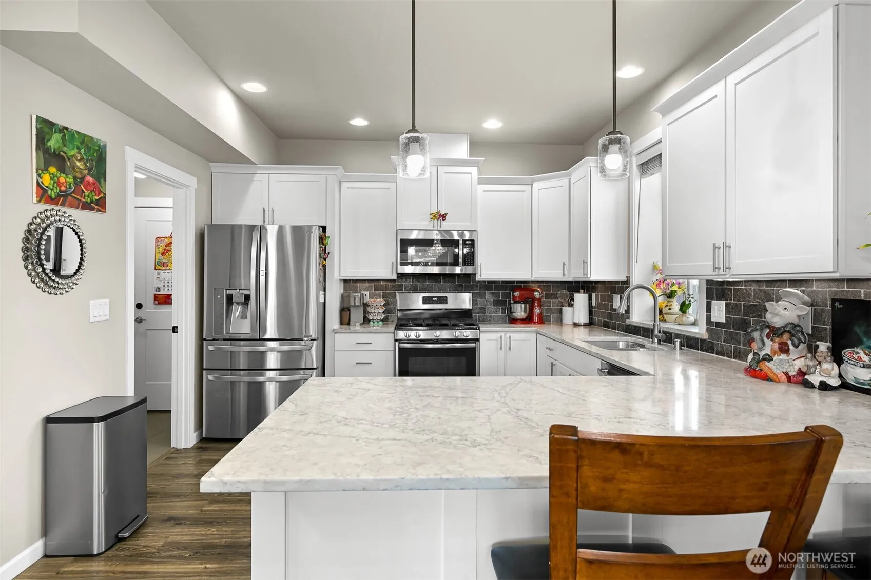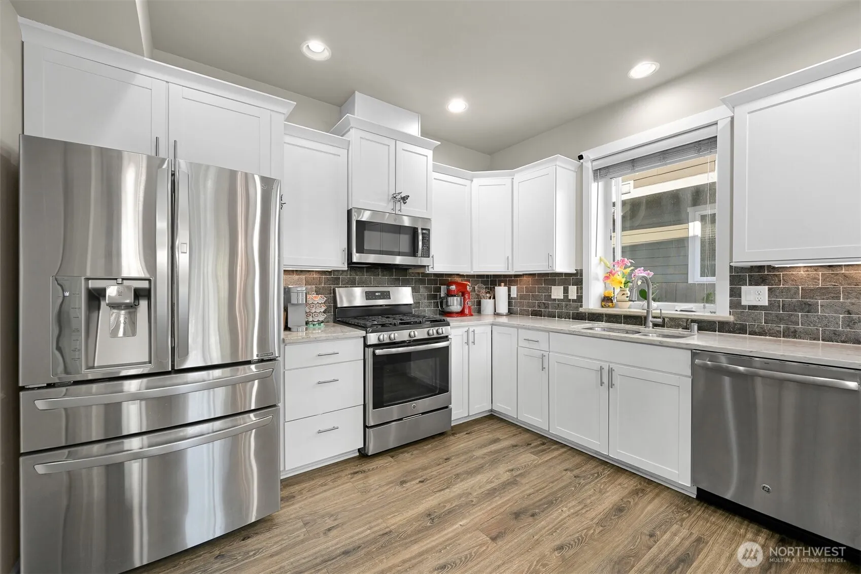 Welcome to this inviting corner lot Ferndale home offering comfort, convenience with lots of natural light. The open layout flows seamlessly from the living room to the kitchen and dining area, perfect for daily living or entertaining. Large windows are throughout the home inviting natural light, highlighting the fresh finishes throughout. Upstairs bedrooms provide ample space, with the primary suite featuring a private bath. Outside, enjoy a fully fenced backyard for the green thumbs in your life with fruit trees. Conveniently located near parks, schools, shopping, and easy access to I-5. A great place to call home!