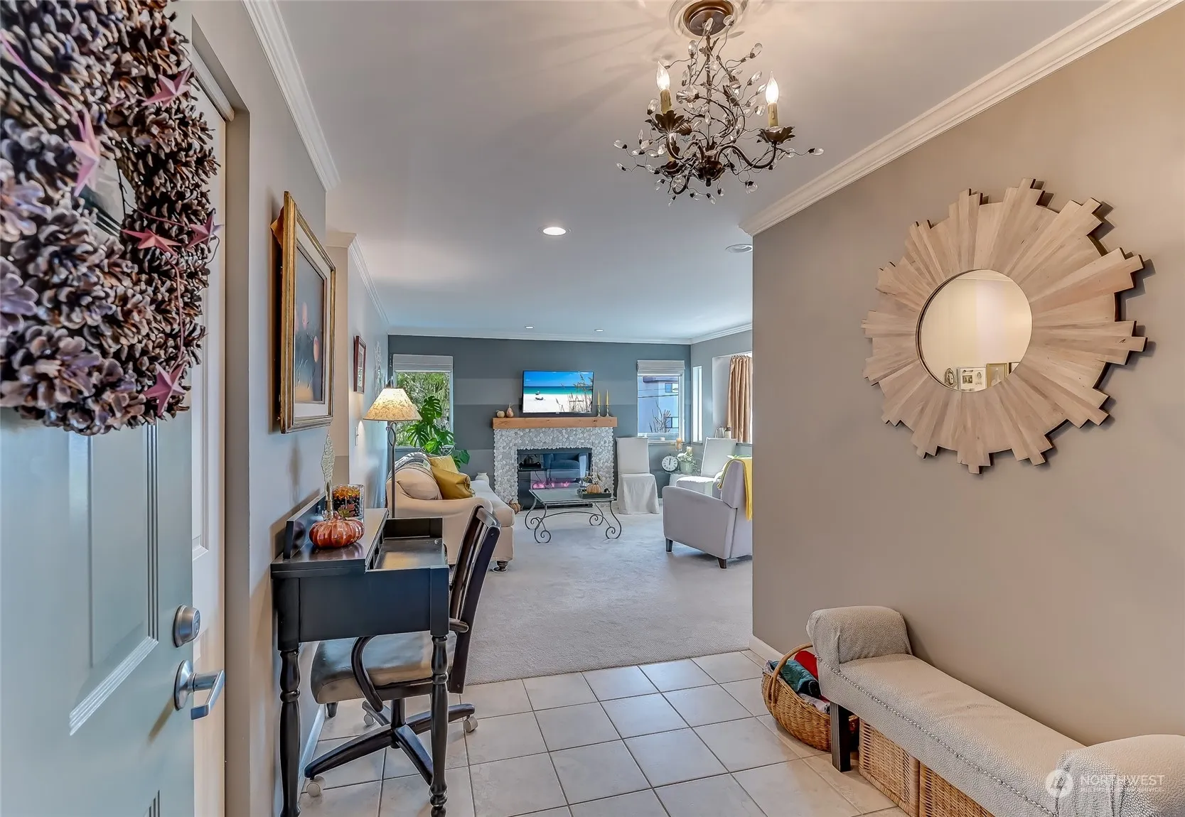 Warm, inviting & packed w/Puget Sound views at every turn. Water views from kitchen, great room, 2 decks & both bedrms. Only 6 units in this building and this is an END unit. Neat as a pin w/recent updates of new microwave, washer/dryer, water heater, carpet, countertops, faucets & sinks. Primary w/big walk-in & new tile in private bath. New paint thruout. New electric fireplace, beautiful mantle w/rock accents adds to the coziness you’ll love on a chilly evening. 1 Covered gar. parking & 1 reserved outdoor spot too. Complex is gated & has security entrance. Minutes to walk to the marina, restaurants, shopping & beautiful trails. Quick trips to Seattle, Seatac & major arterials are all yours too, convenient bus stops. COME QUICK