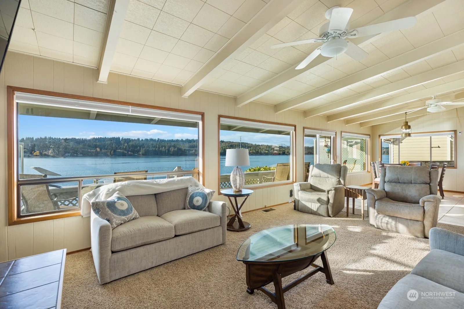 Wonderful waterfront home on Case Inlet. Easily stroll the beach from your low-bank property. West-facing to enjoy fabulous sunsets & the Olympic Mountains. One-level living home with a touch of Mid-Century style. Main home features 2 bedrooms & full bath. Open concept with bright & airy kitchen w/granite counters. Enjoy a wall of windows across entire home for fantastic water views. Your guests will enjoy a separate guest bedroom and 1/2 bath located under garage. Detached 2-car garage w/shop space & off-street parking for 5-7 vehicles. Cozy courtyard between guest suite & home for alfresco dining. Spacious waterfront decks & firepit to make memories for a lifetime. Clamming, kayak, or paddle board right outside your doorstep.