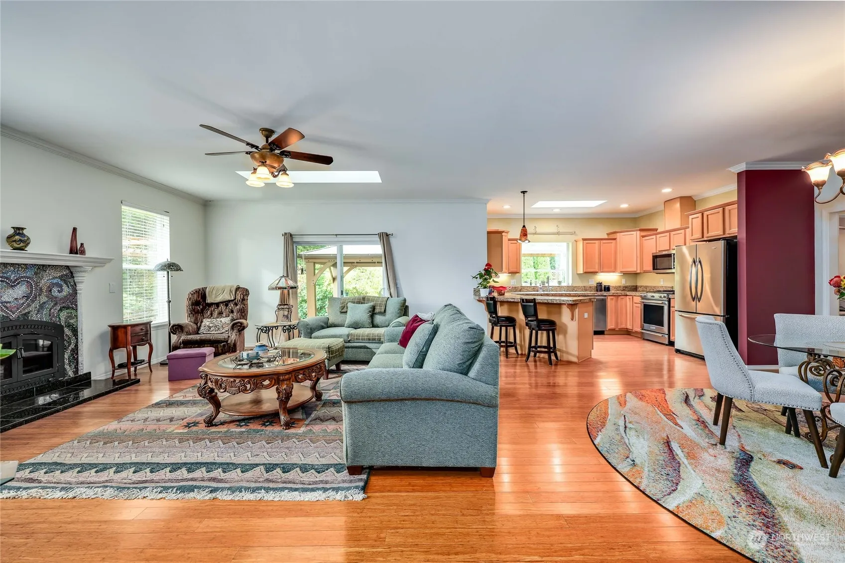 2 homes, 2 parcels. Tucked away on a private road sits 2 lots / 5.0 acres. The single story main home built in 2007 greets you with a large open great room & bamboo floors. The living room enjoys a wood burning fireplace for those cozy winter nights. A large bright Kitchen & separate dining are perfect for entertaining. The primary BR has a walk-in closet & private bath. 2nd BR down the hall, BTH, & a 3rd room with closet that could be a BR. There is also separate office ideal for work at home. Don’t miss the gorgeous Tiffany lighting. Wander the gardens, planting beds, chicken coop, & wood storage. Fabulous large barn/ shop, separate wood cutting area. The bonus 2 BR/2BTH mfg home is in need of TLC. 2 septic systems, owned propane tank