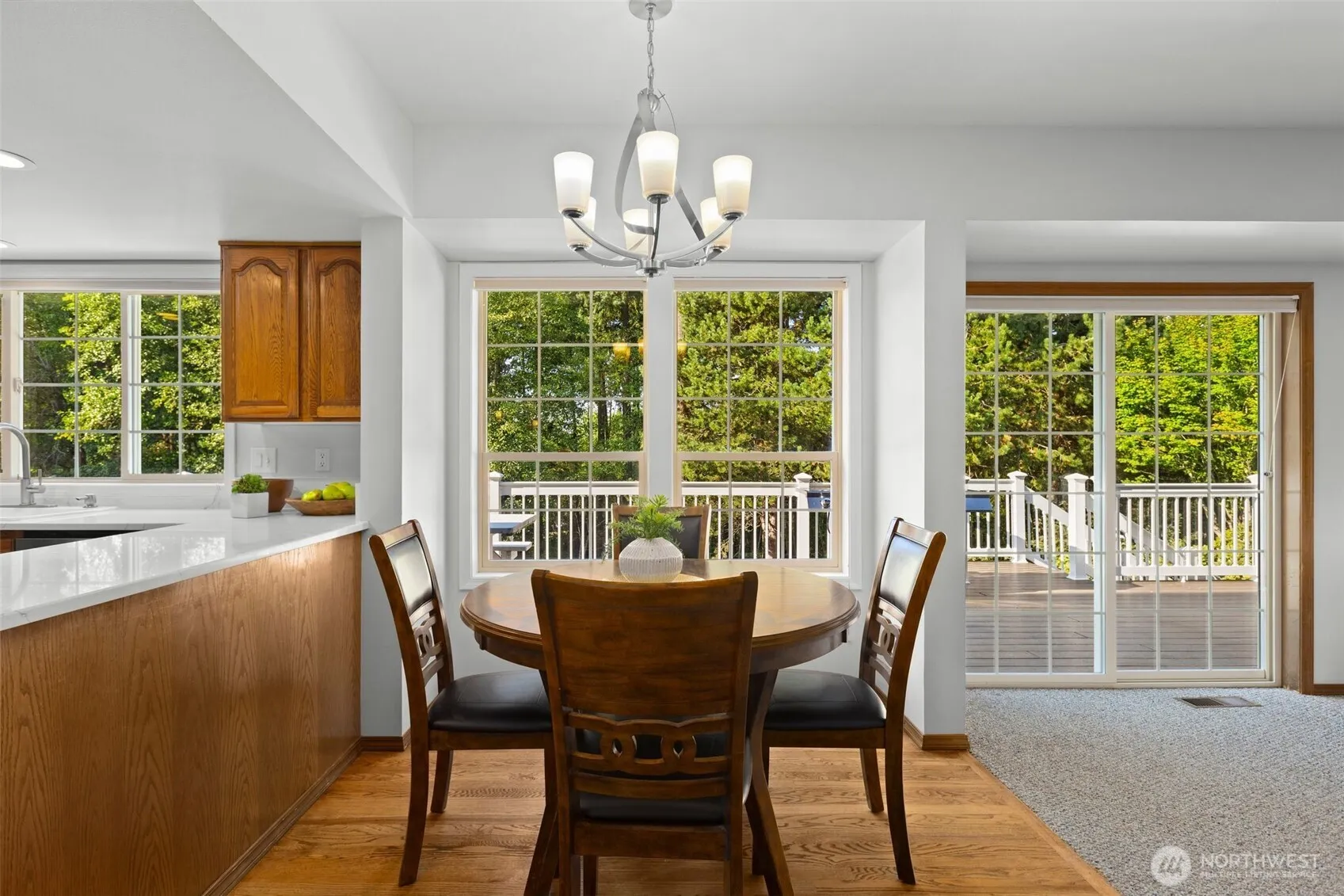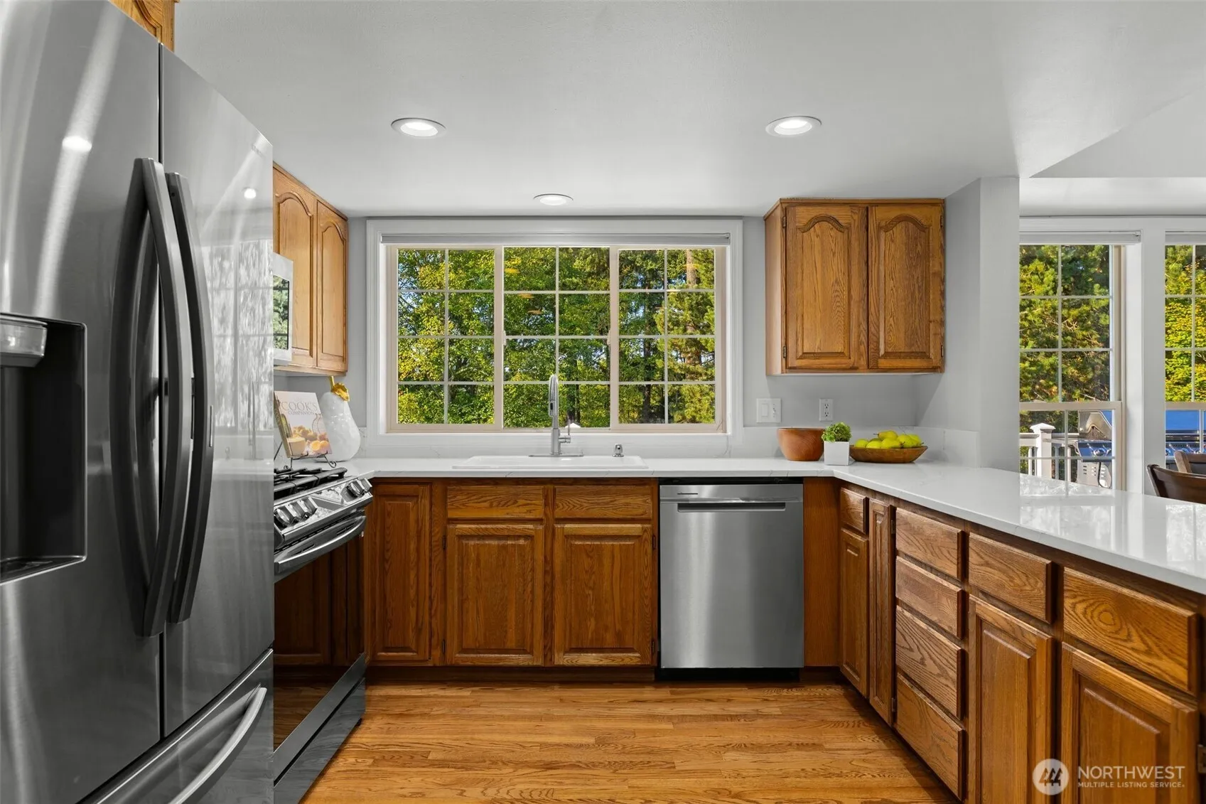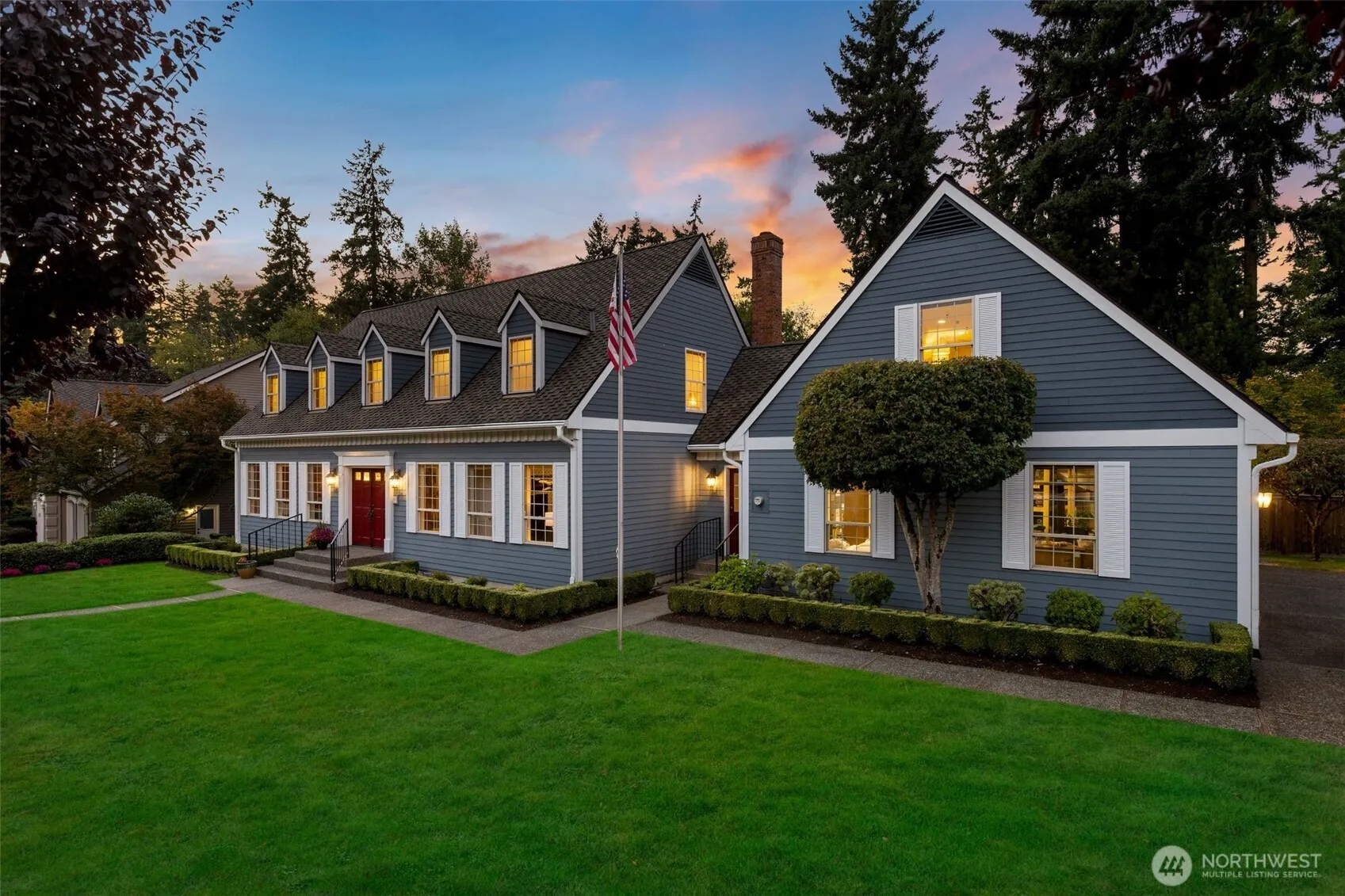 This storybook Cape Cod in Campus Highlands is embraced by a shy half acre of blossoms and greenbelt privacy. Dormered rooflines and shutters lend timeless charm, while inside oak floors, crown molding, and sunlit rooms create a warm backdrop for everyday living. The kitchen with white quartz countertops and newer appliances flows to the family room and Trex deck overlooking a park-like yard where apples and pears ripen. Retreat to the serene primary suite or the versatile bonus room above the 3-car garage. Downstairs, unwind by the glow of the pellet stove or savor a glass from the wine cellar. With A/C, smart lighting, and a security system, this home blends comfort, character, and community steps from Panther Lake and the aquatic center.