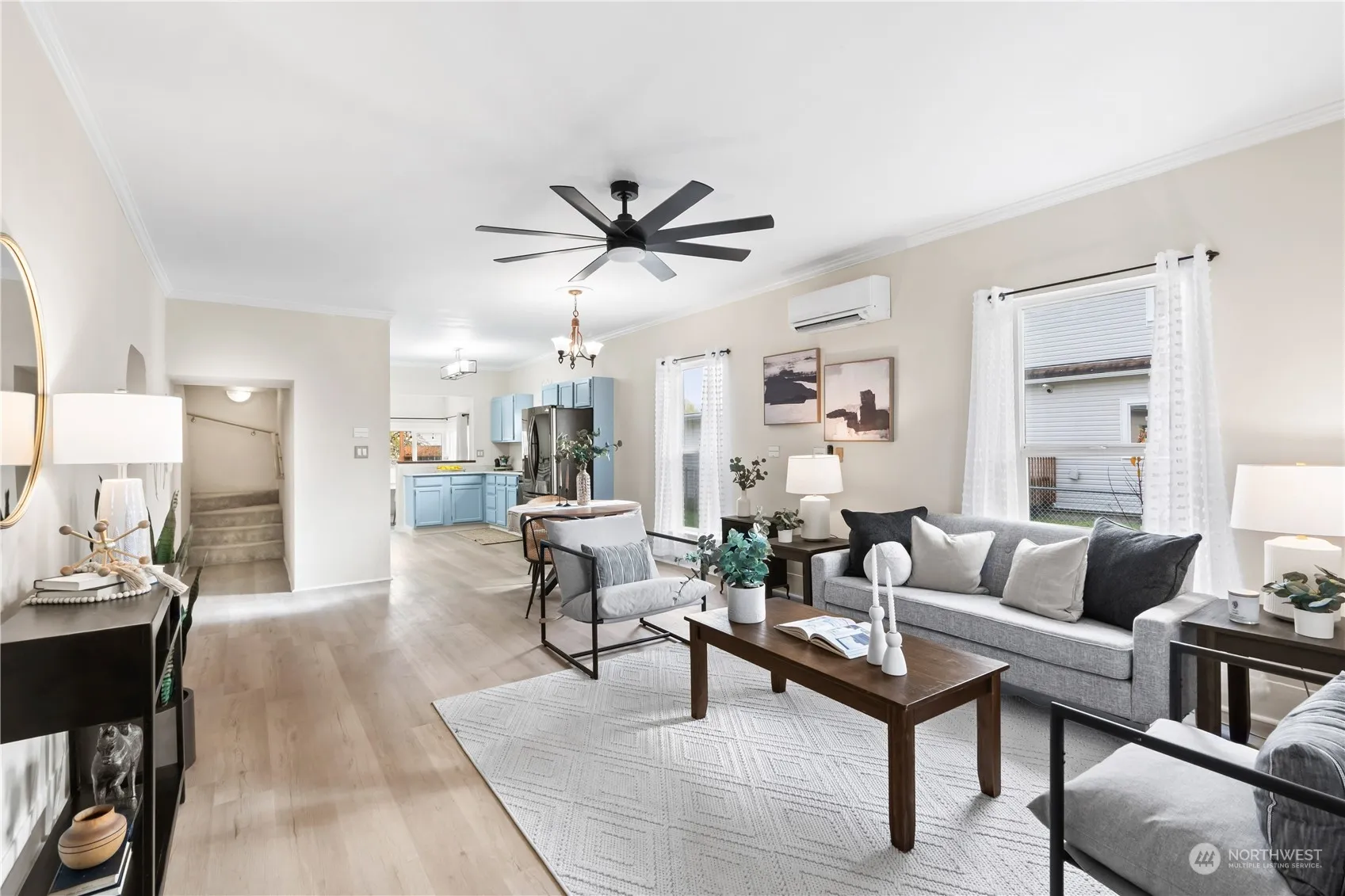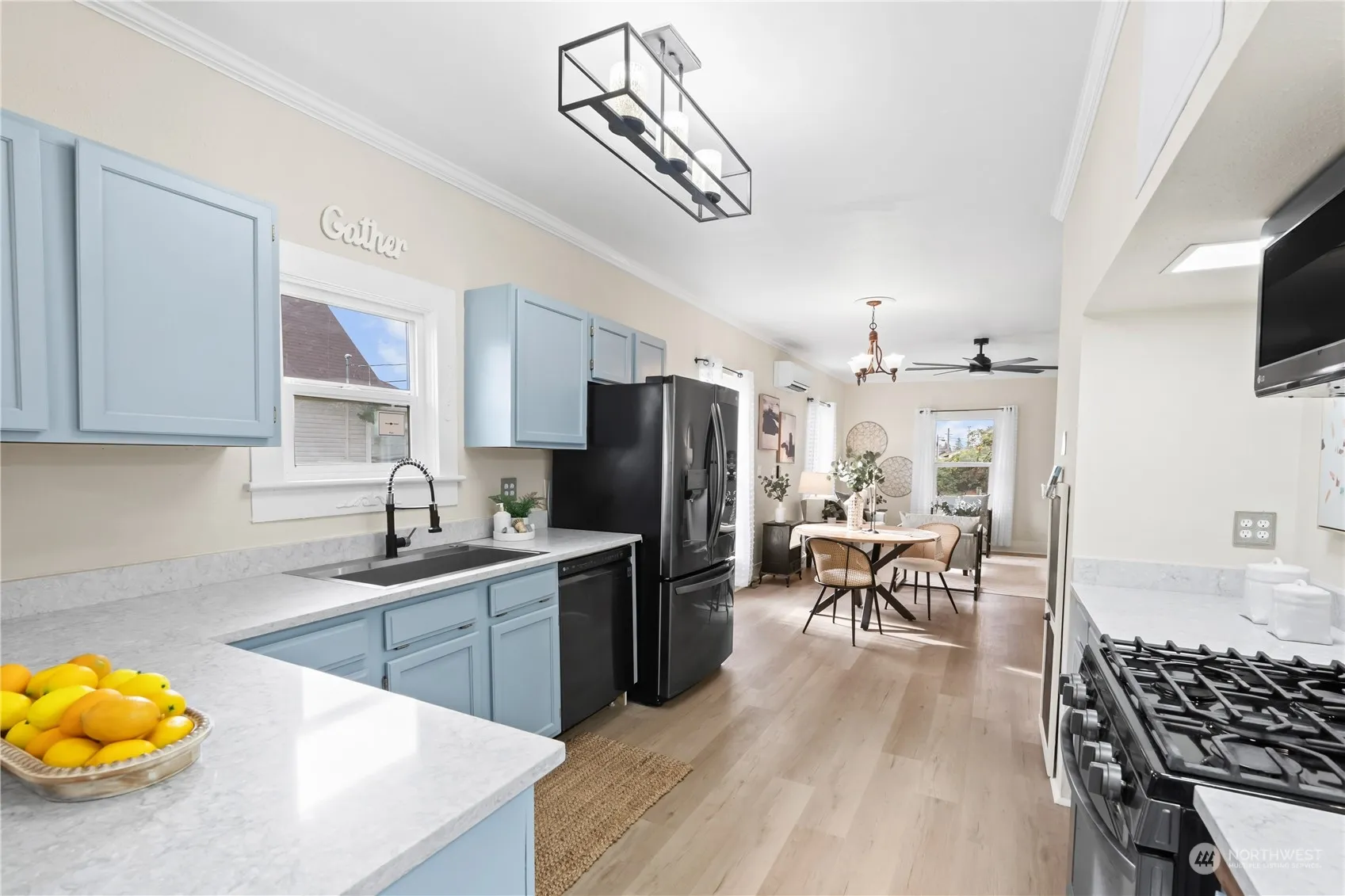Updated MTN View Home w/Full Apartment Over 2+Car Garage/Shop! Looking for Multi-Generational Living or a Rentable Unit to offset your Mortgage? You’ve found it! Easily use as 2 Units or 1 Lrg Home! Main Home:3 Bds/1.75 Baths/Living/Dining/Kit & Nook/Laundry/Sunroom. Apt:1 Bd/.75 Bath/2nd Kit/Closet/Laundry. Apt access via Enclosed Porch w/Sep Doors to Main Home & Garage. Updates you NEED: Newer Roof (2022), Vinyl Windows, LVP, Quartz Counters, Stainless Appliances w/Gas Range, Gas Fireplace in Liv, Updated Baths, Newer Carpet, High Ceilings, Ductless Mini-Splits w/3 Heads for Heat/AC, Crown Molding & Chair Rail +Vintage Touches throughout. Garage/Apt: Radiant Floor Heating-so cozy! 741 sq ft Mechanics Dream Garage w/newer door w/opener!