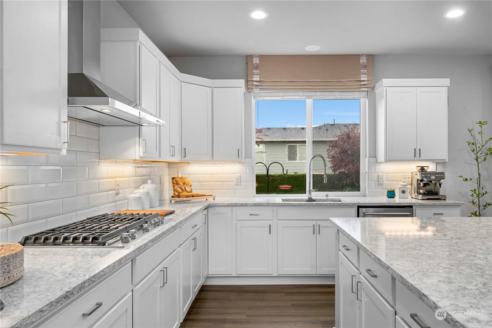 Experience luxury & style in this Maple Hills masterpiece, where every detail is crafted for modern living & comfort! Former model home, loaded with nearly $100k in upgrades, sits beside a serene greenspace-spacious feel & partial mountain/valley views. The luxurious outdoor covered living area features a gas stone fireplace, firepit, water feature, sprinkler system, landscape lighting & custom pathways. The most desirable floor plan-main-floor den, expansive great room, and a gourmet kitchen w/quartz counters & a chef’s appliances. The owner’s suite feels like a private spa retreat. Additional touches include custom built-ins, A/C, in-wall speakers, heated garage w/epoxy garage floor & more. Walk to Cedar Park Trails. Must see to believe!