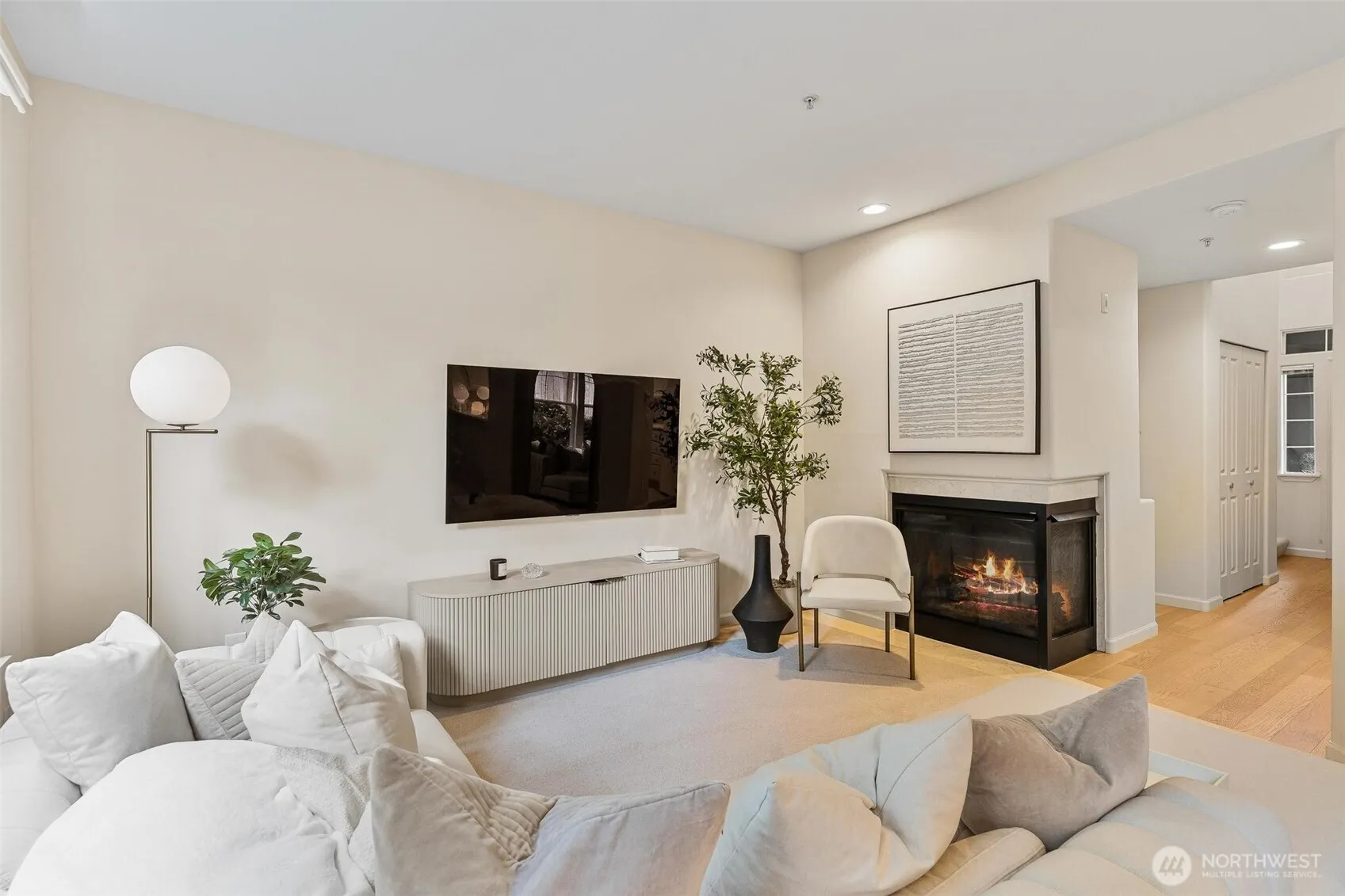 This luxurious, fully remodeled townhome style condo offers a seamless blend of modern elegance and sophisticated comfort. A complete cosmetic overhaul has resulted in a one-of-a-kind living space, featuring high end materials like quartz counters & back splash, designer light fixtures, Cafe’ design appliances including double oven and 6 burner gas stove. Chef kitchen, large dining area & gas frpl in charming living room. There are 2 bedroom suites separated by laundry room. The primary suite features a walk in closet, beautiful remodeled bath w/stand alone soaking tub, double sinks and walk in shower. Private garage w/storage. Updated exterior, newer roof, gated entry, ample guest parking & strong HOA reserves. Minutes to Waterfront.