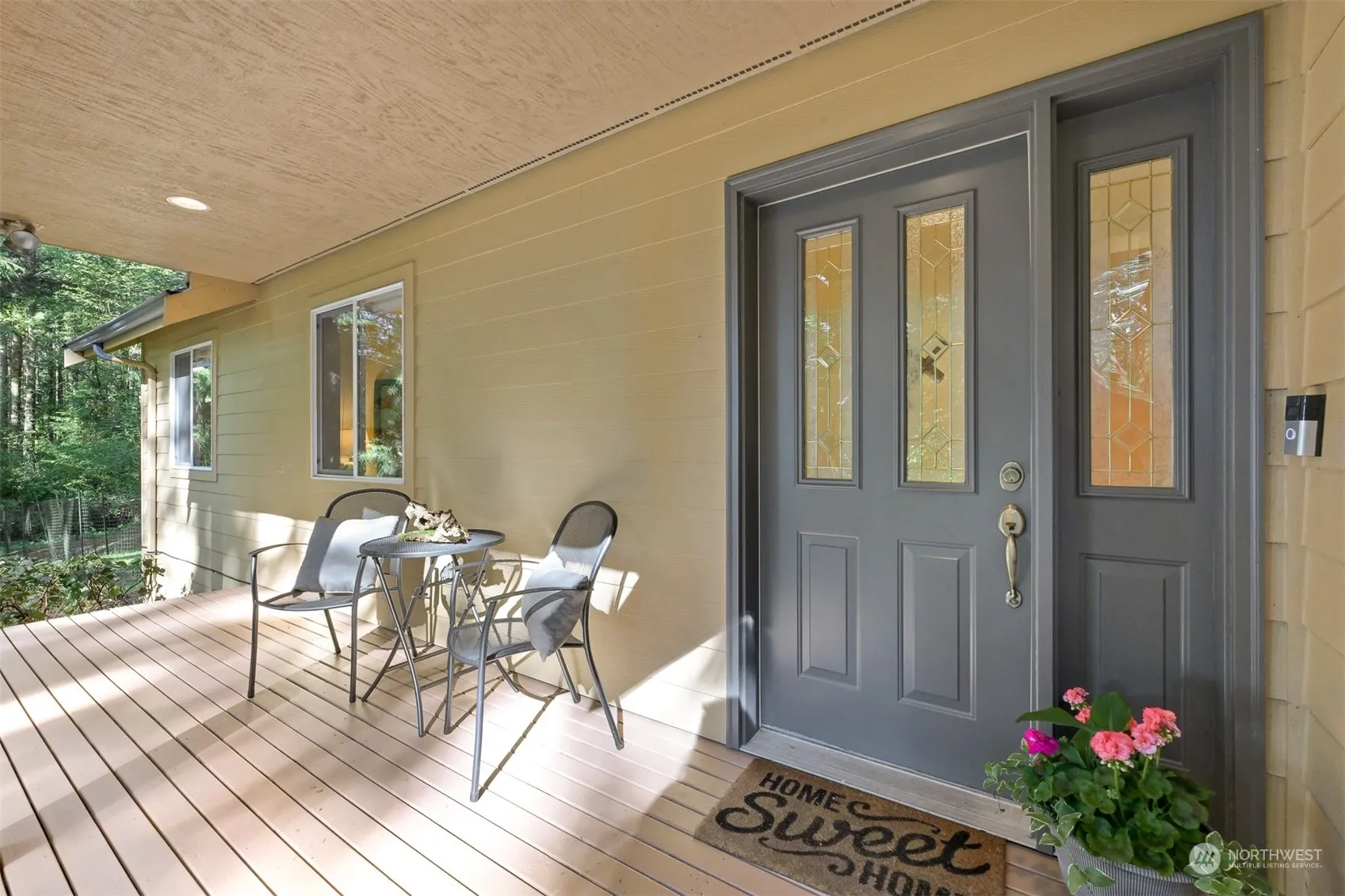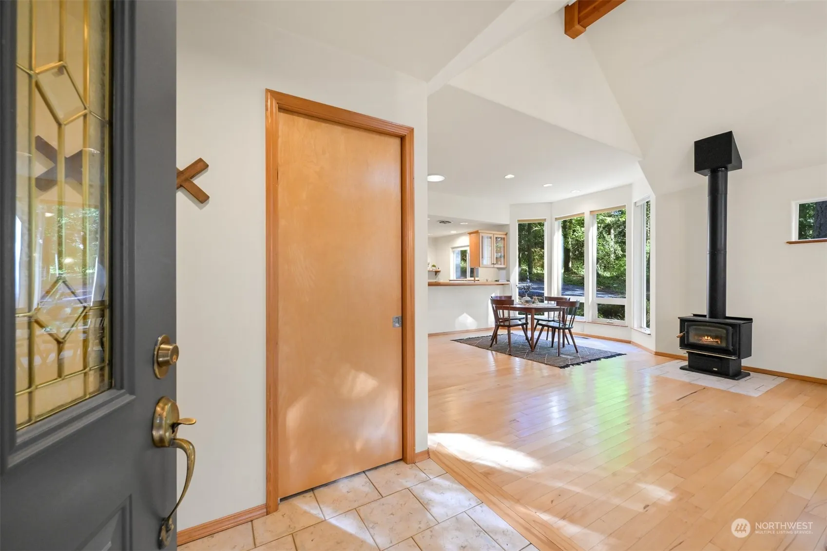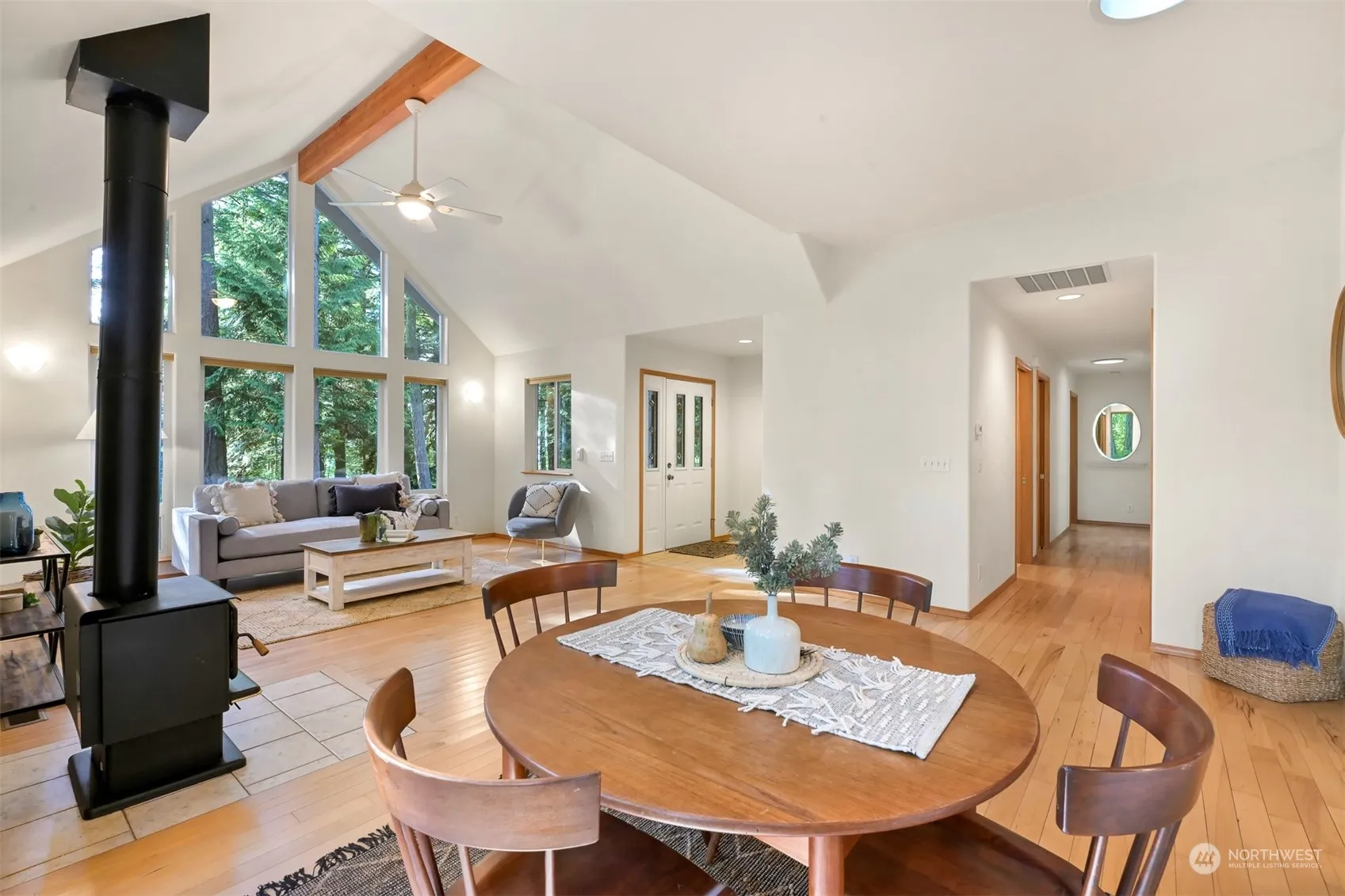 West side of Lummi Island with views of Georgia Strait, Matia and Sucia Islands + stunning sunsets! This beautifully maintained one level home {age in place} flanked by Evergreens sits on 3 private acres within a short walk to beaches! Open-concept design. Light-filled rooms with vaulted ceiling and clerestory windows. Accessible for all abilities with wide hallways, pocket doors, hardwood floors and dimmers. Culinary kitchen including prep sink, bar seating, dining room opens to the living room with a wood stove. Primary suite that features a deep soaker tub, walk-in closet and private deck. An endless network of miles of trails behind the house. New detached 3-car garage (26′ x 36′). Metal roof. Island living with the best of the PNW!