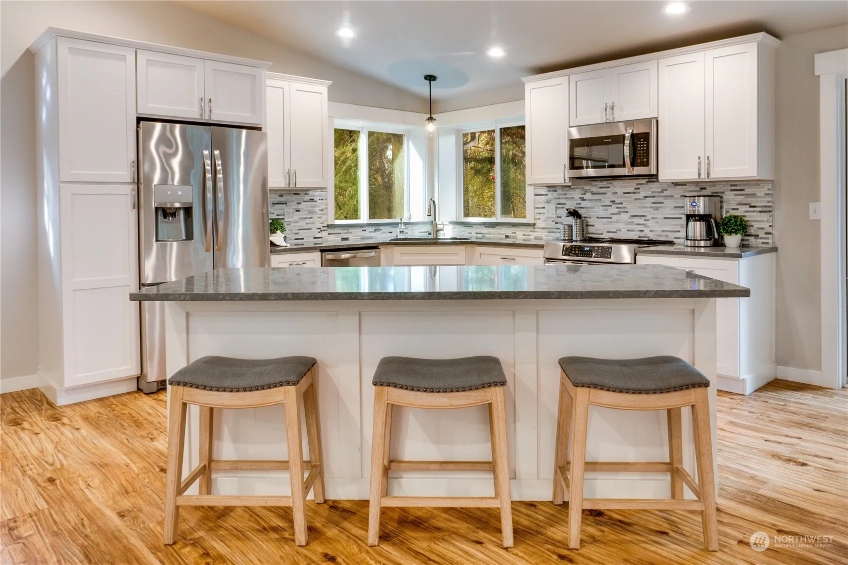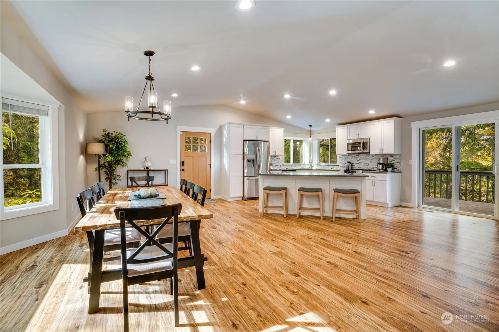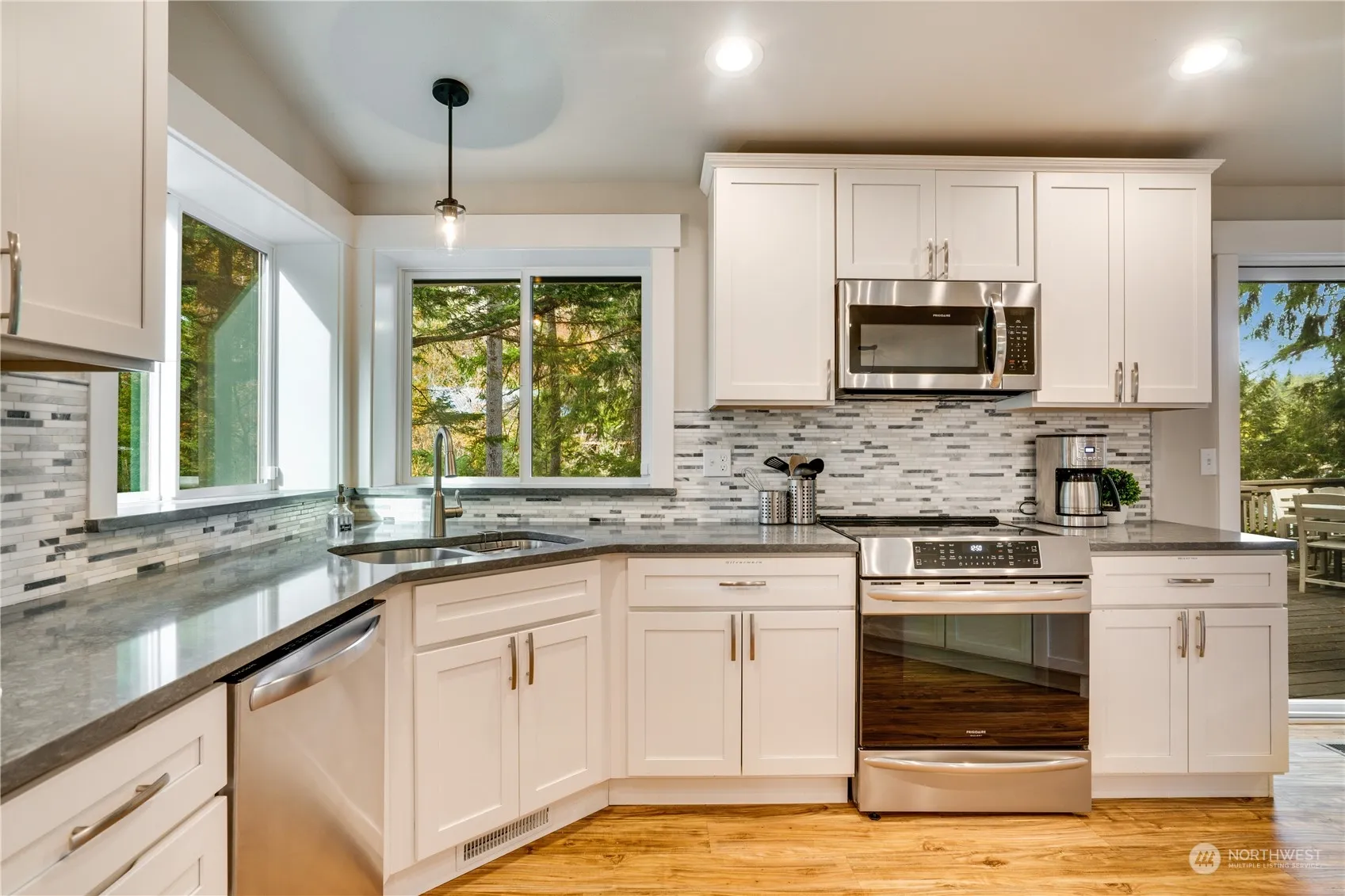 Escape to tranquility at this exquisite retreat located on a secluded 1-acre lot with 200 feet of waterfront! Enjoy a stunning living room wall of windows that provide panoramic views extending all the way to the water, an updated kitchen featuring quartz countertops, shaker cabinets, a large island with seating and fabulous dining room too! Don’t miss the separate bonus space with a murphy bed- perfect for guests. Spend serene mornings with coffee on the wrap-around deck or meander down the newly hardscaped paths with stairs to the water, ready for fishing, kayaking, or crabbing. Gather around the fire pit, or unwind in the hot tub, while enjoying peaceful views and the shimmering marina lights on the Sound. Adjoining lot for sale.